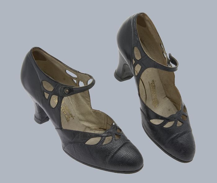 Zwarte lakleren pumps met stiksels, perforatie op de...