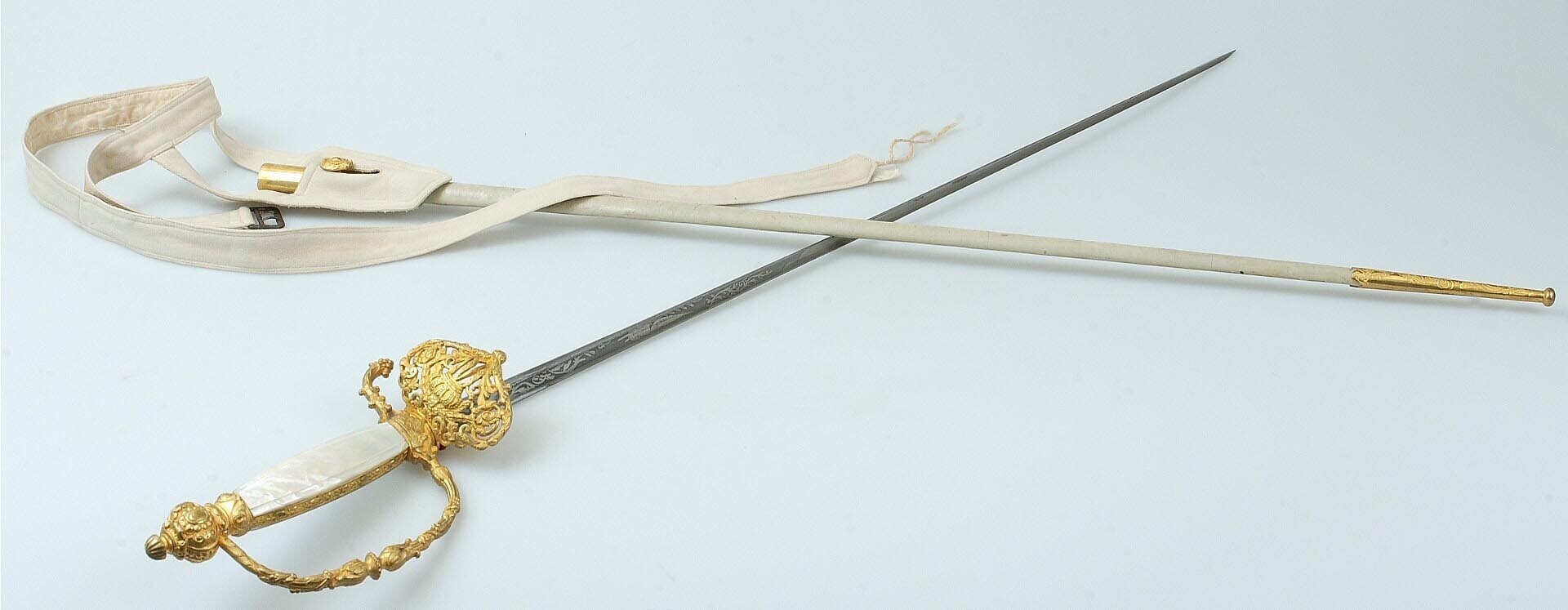 Theepot met deksel en gedecoreerd met de wapens van ...