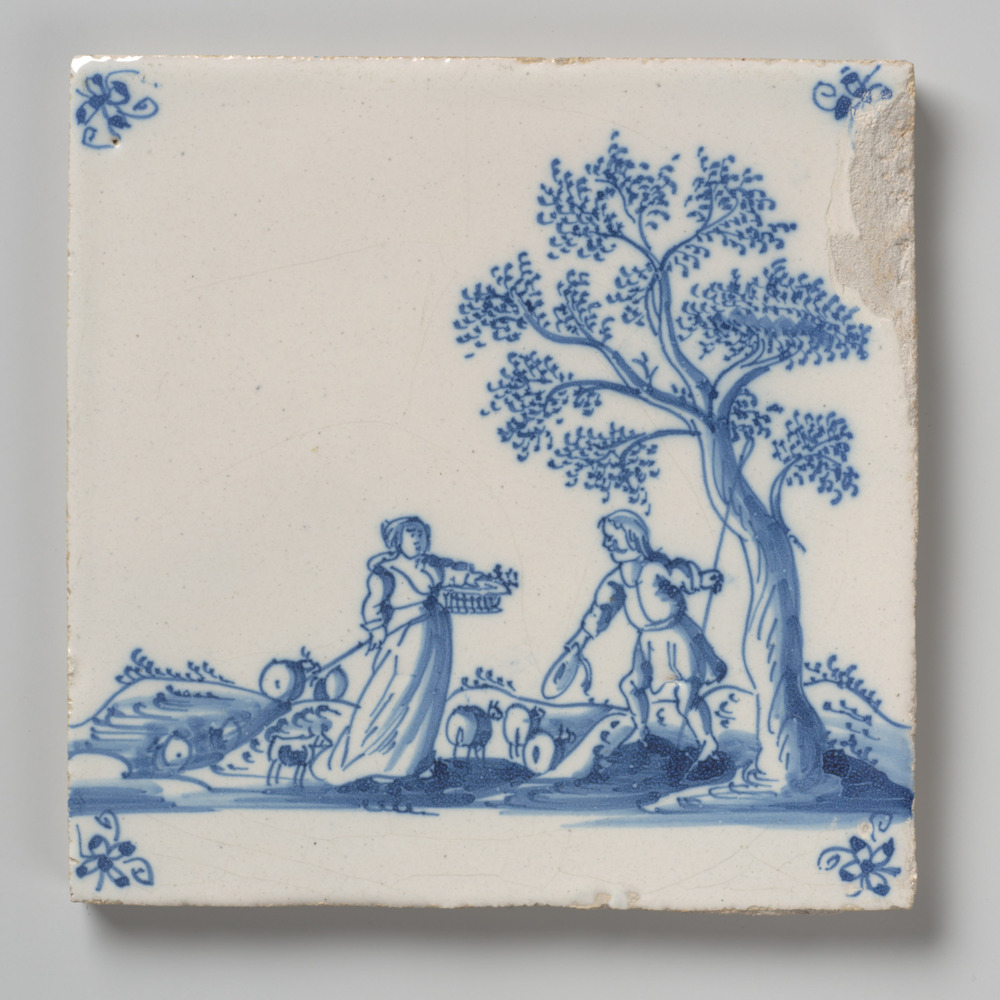 tegel van aardewerk met tinglazuur, voorstellende: h...