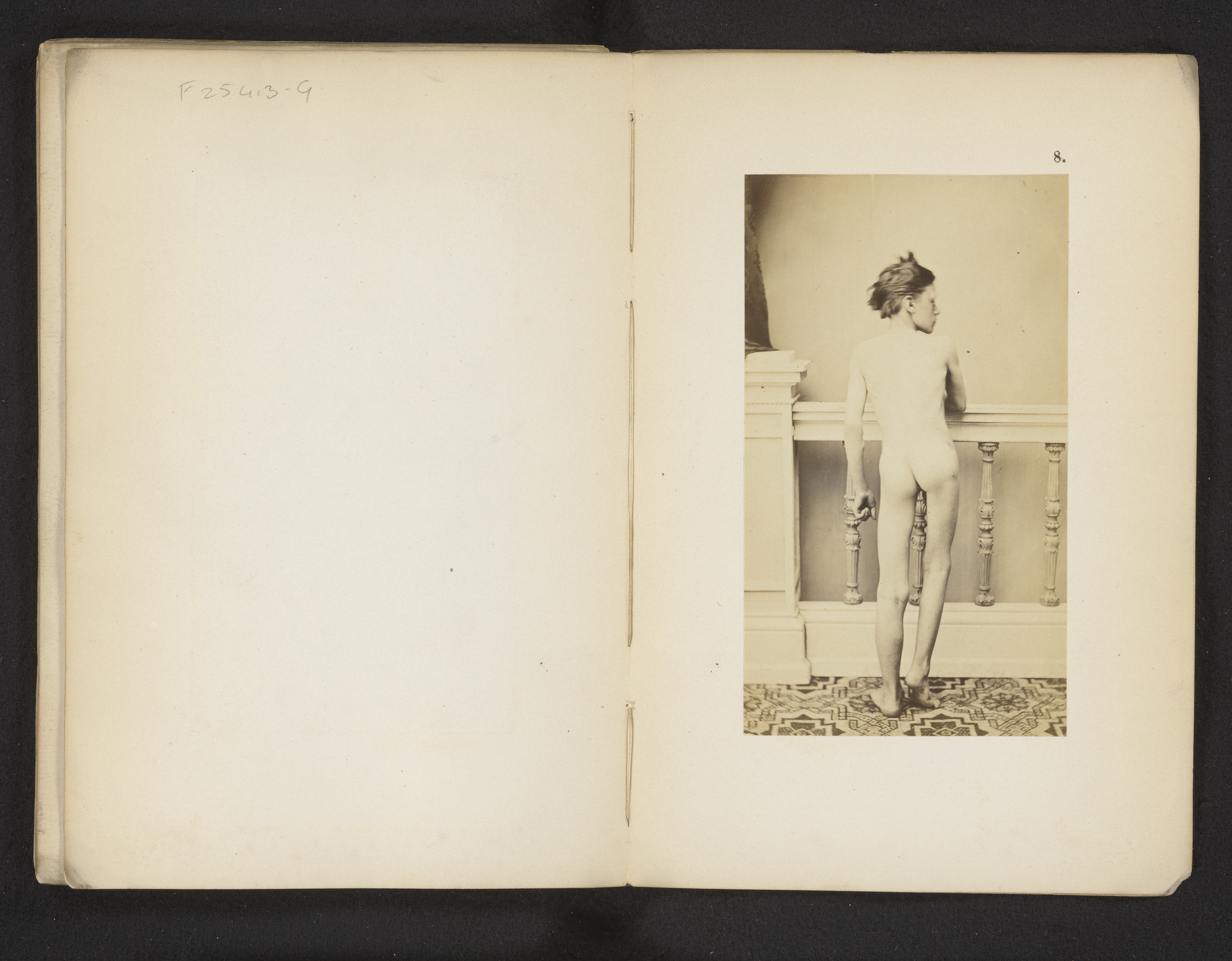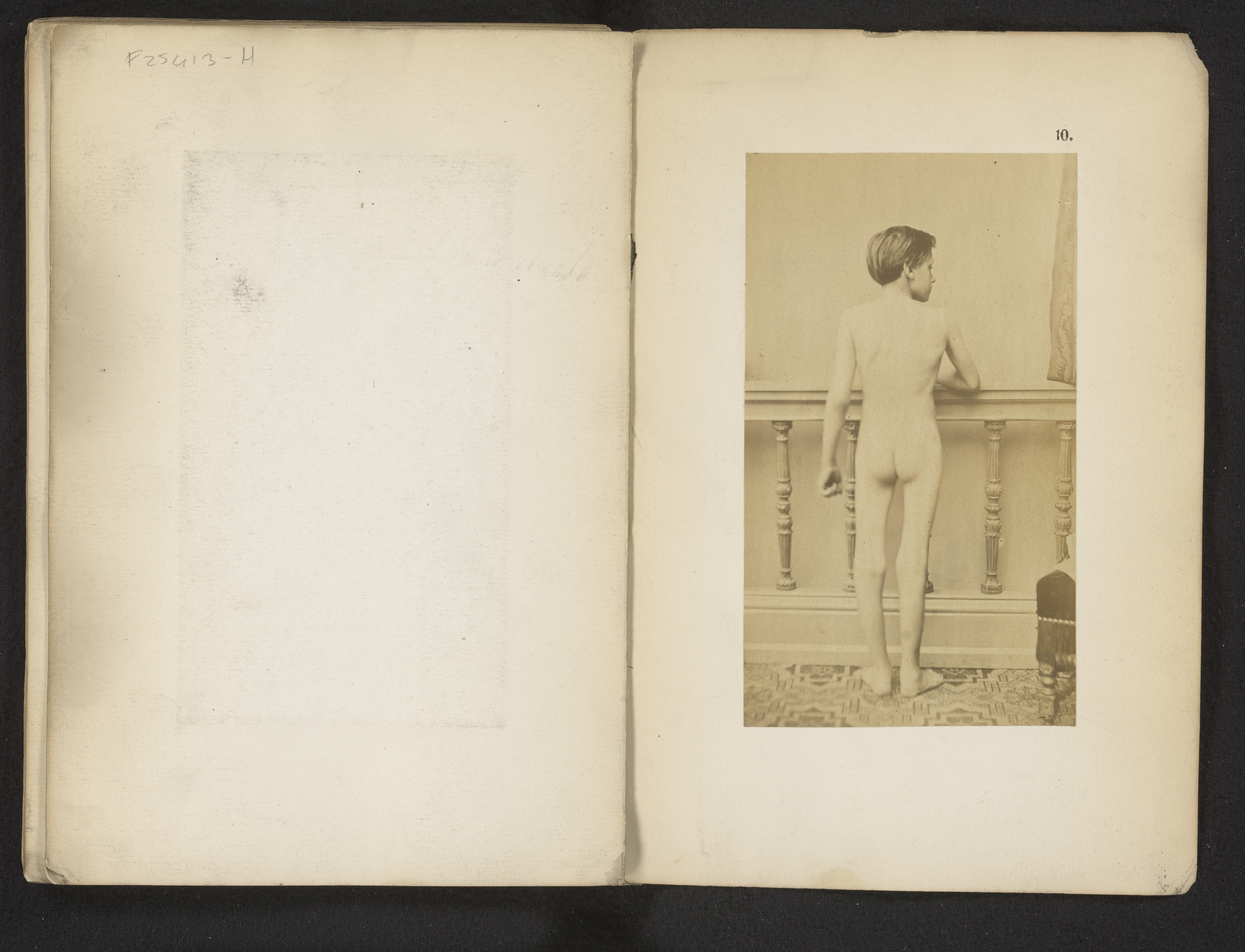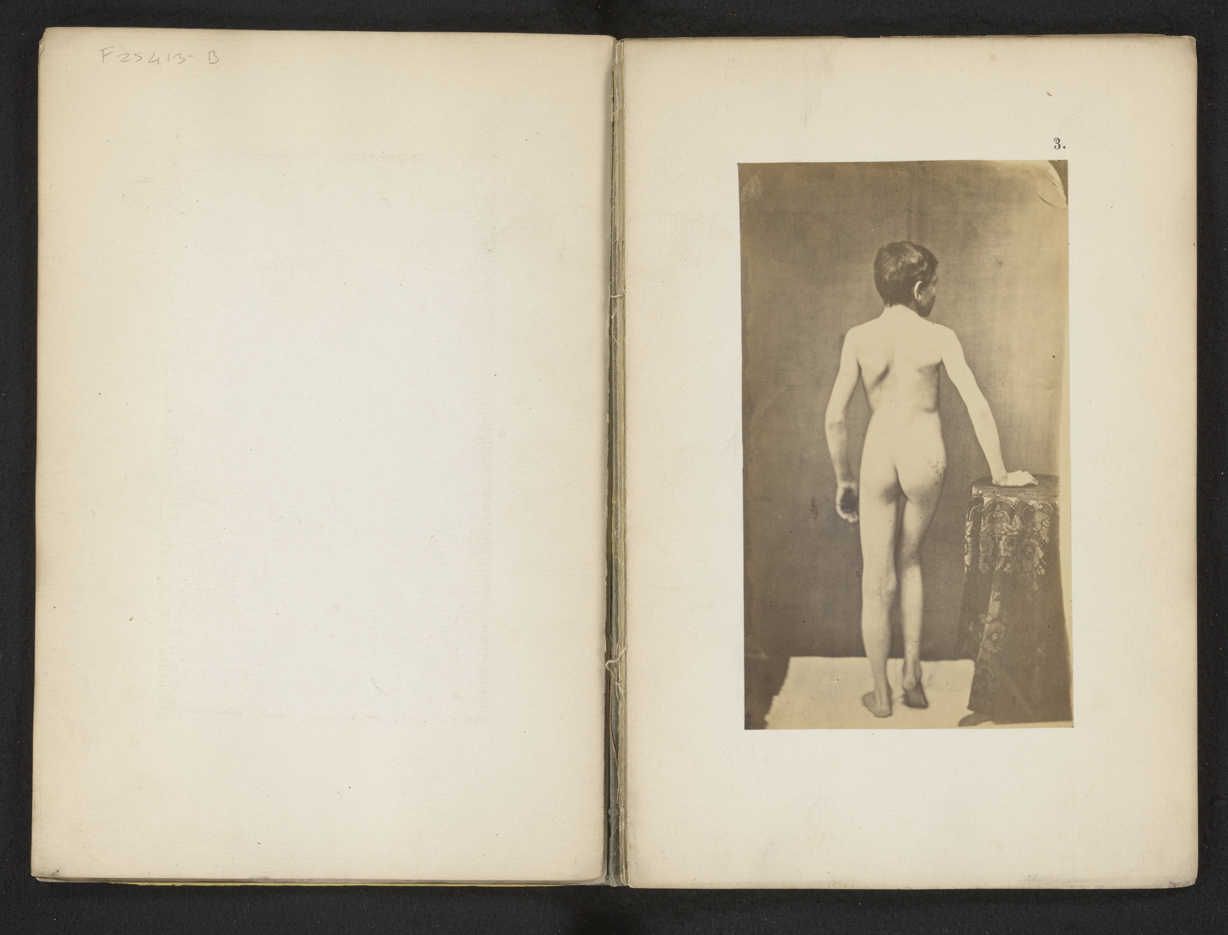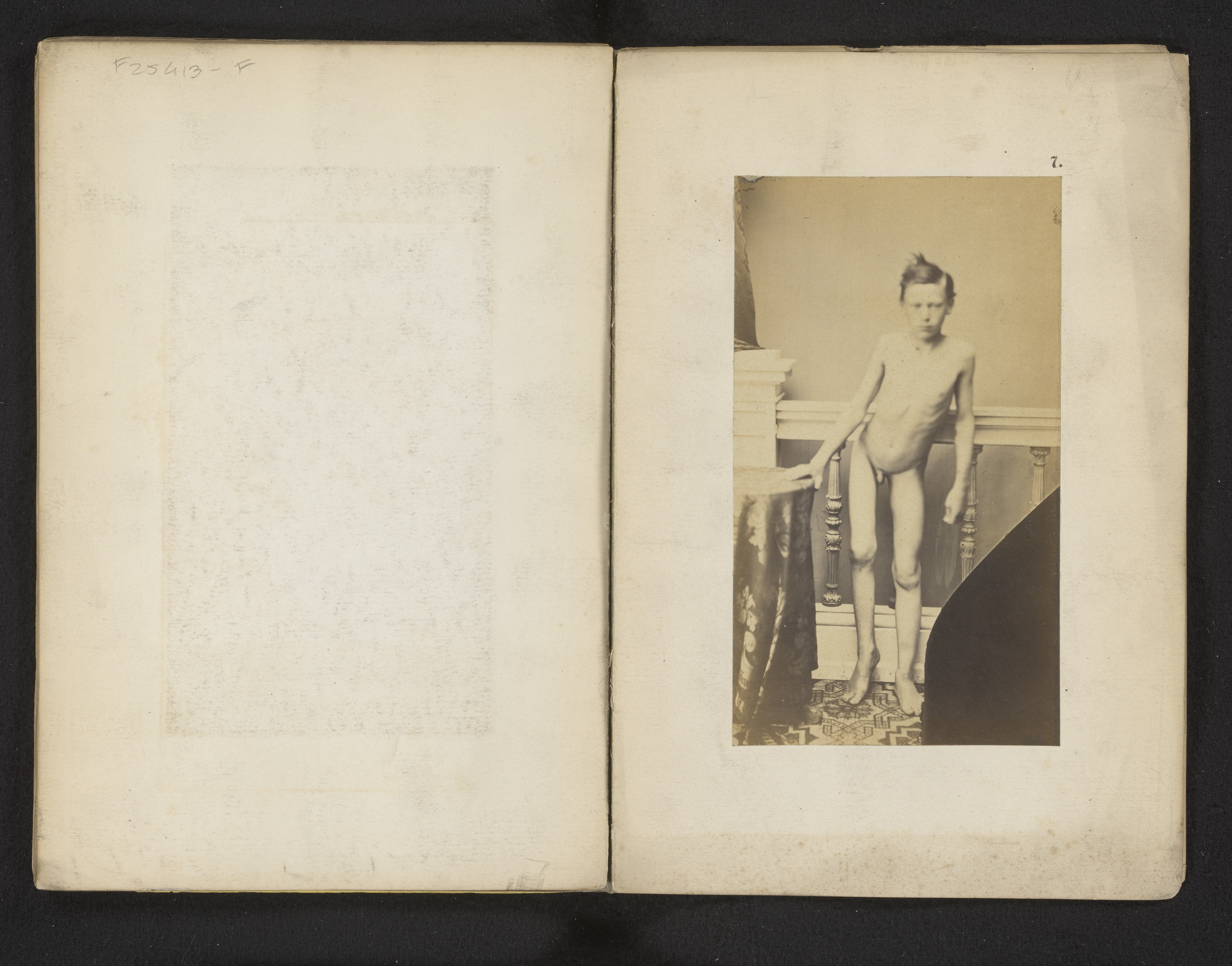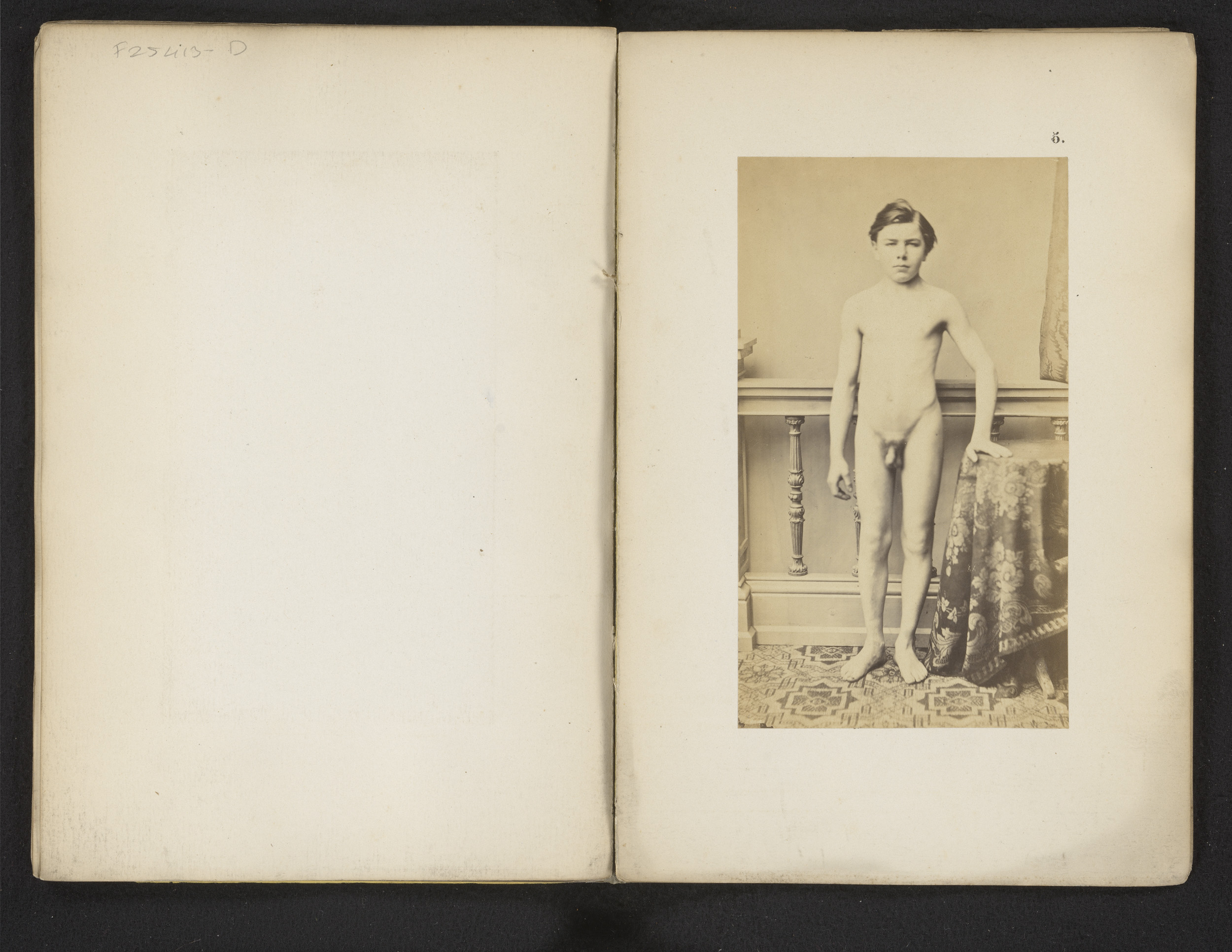 Portret van een onbekende naakte jongen met heupafwi...