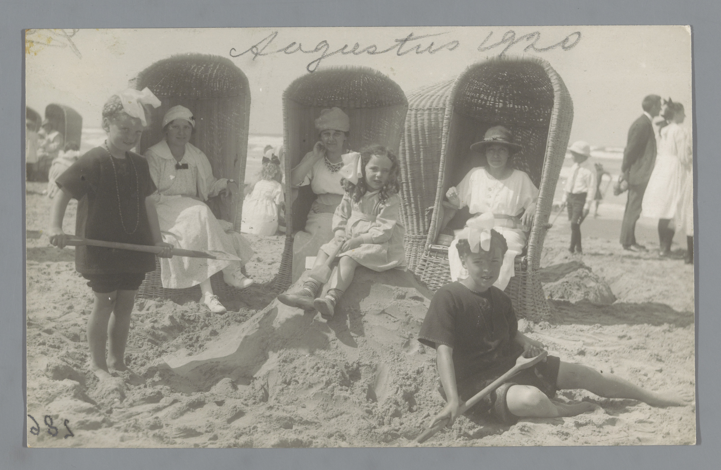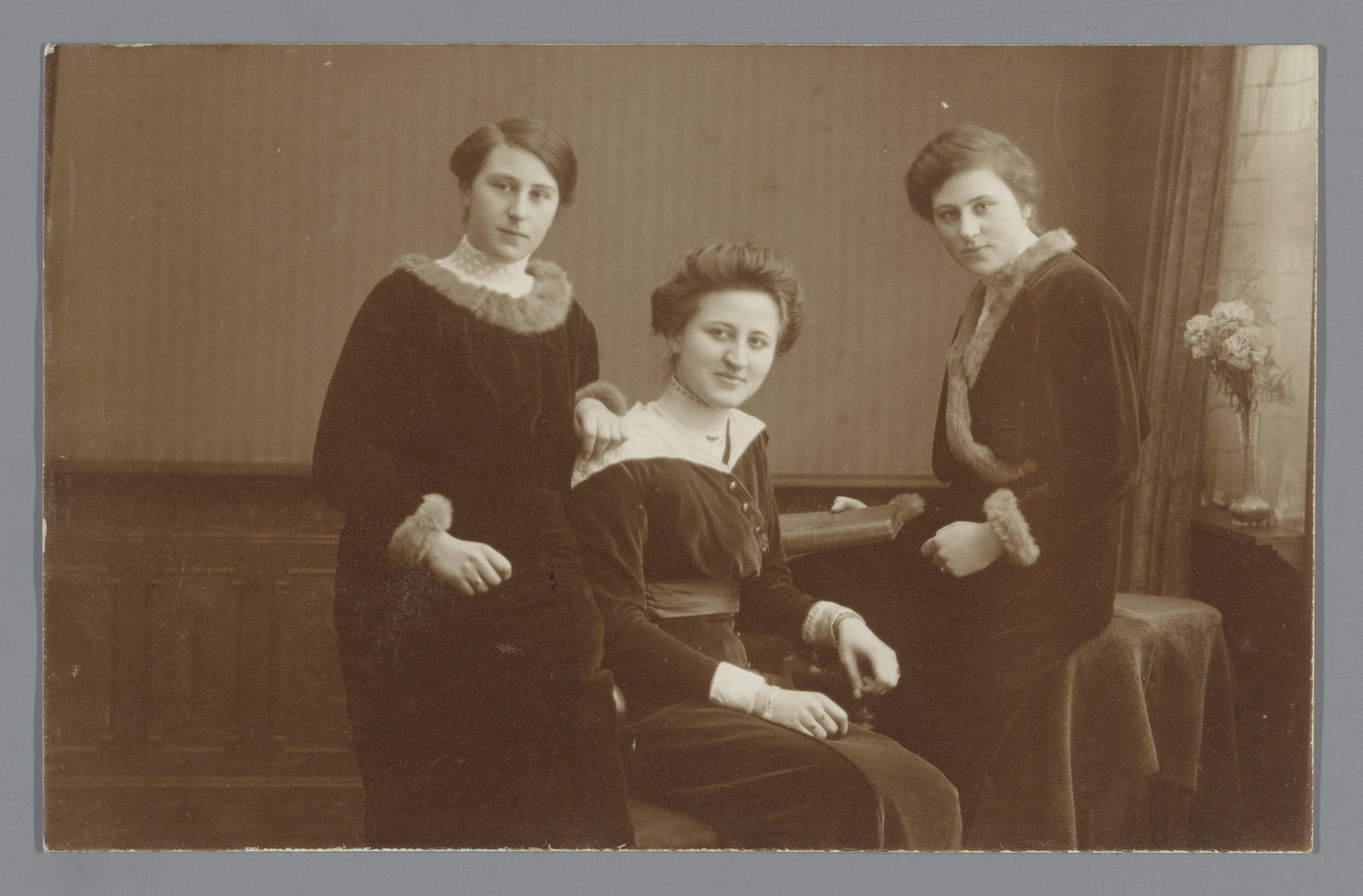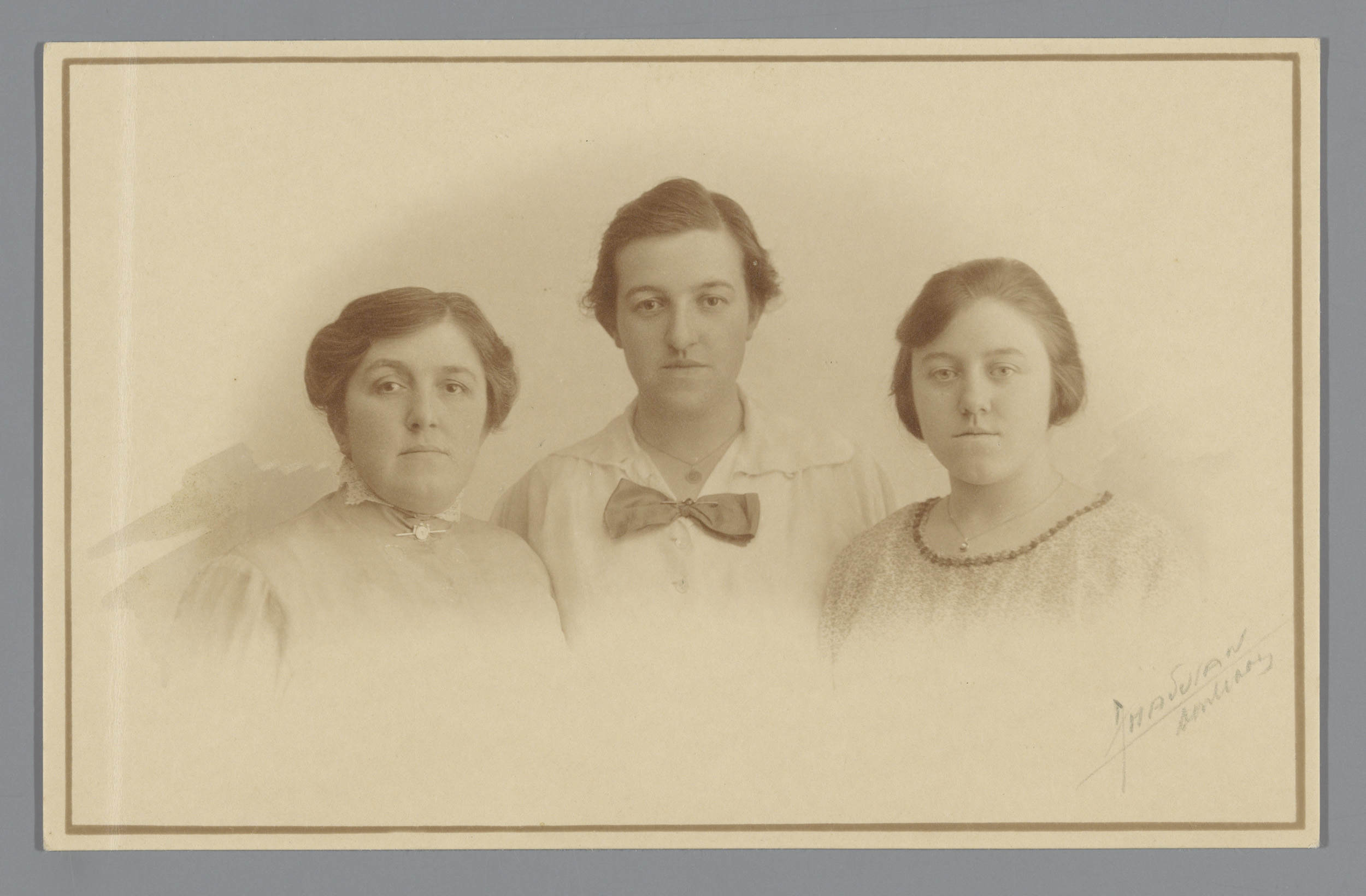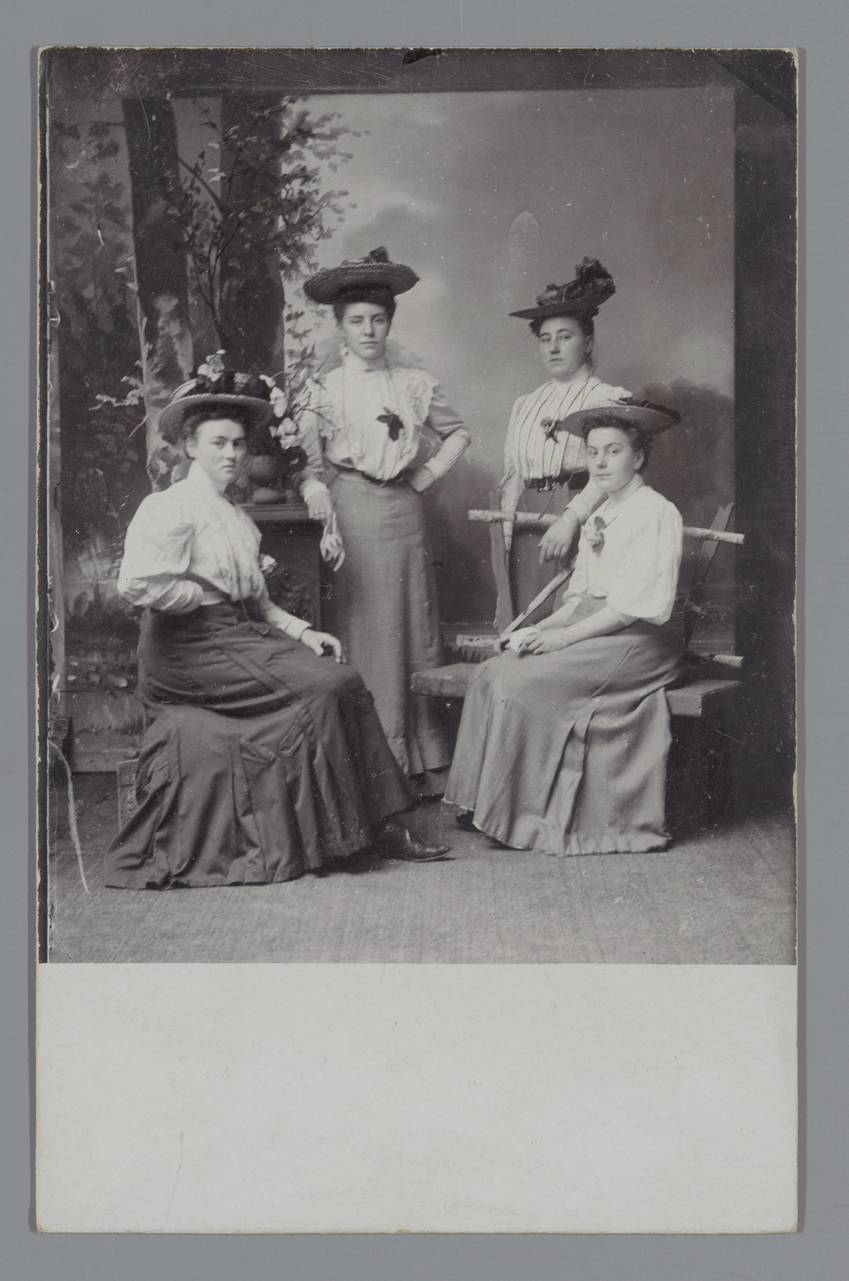 Groepsfoto van drie onbekende vrouwen en kinderen in...