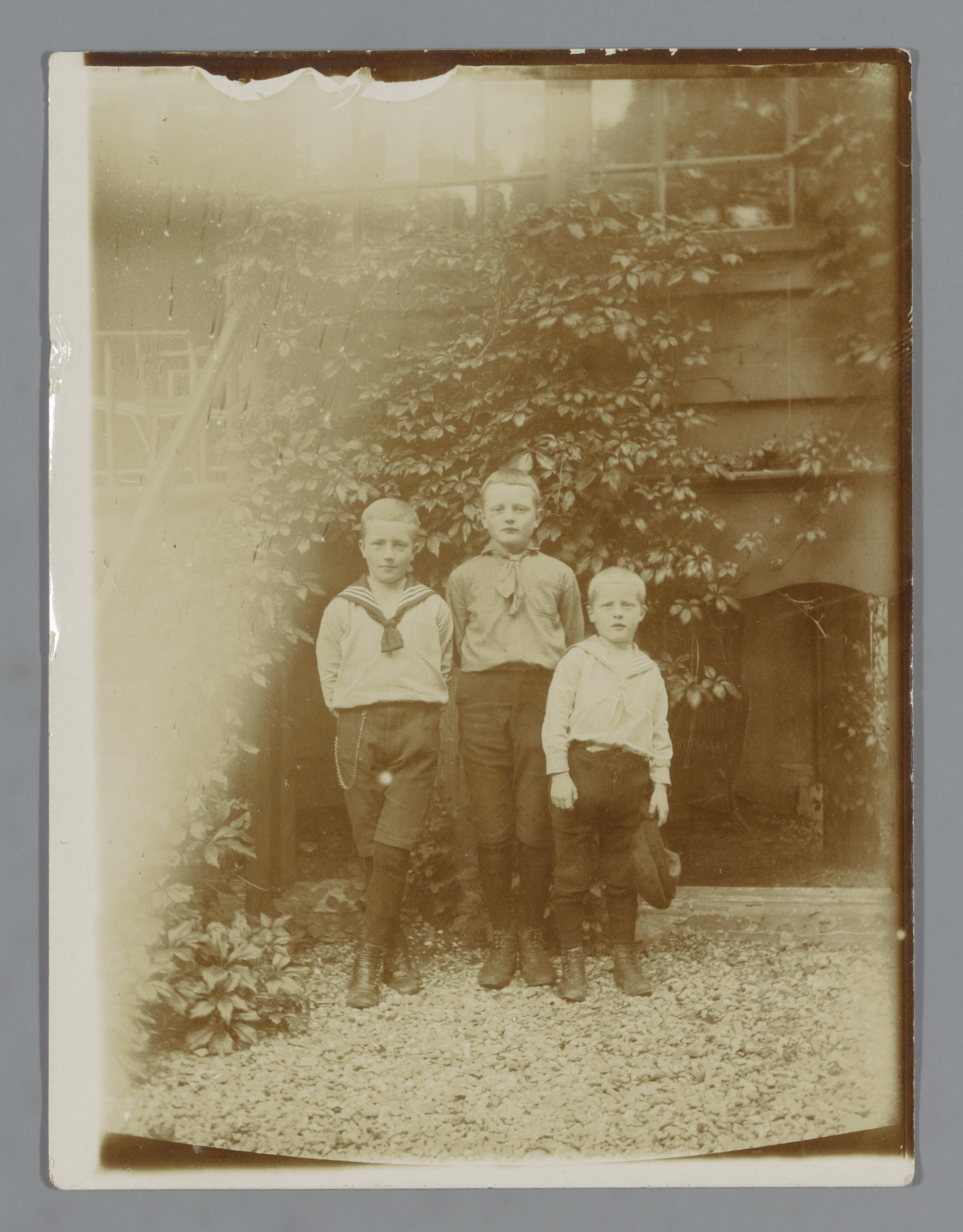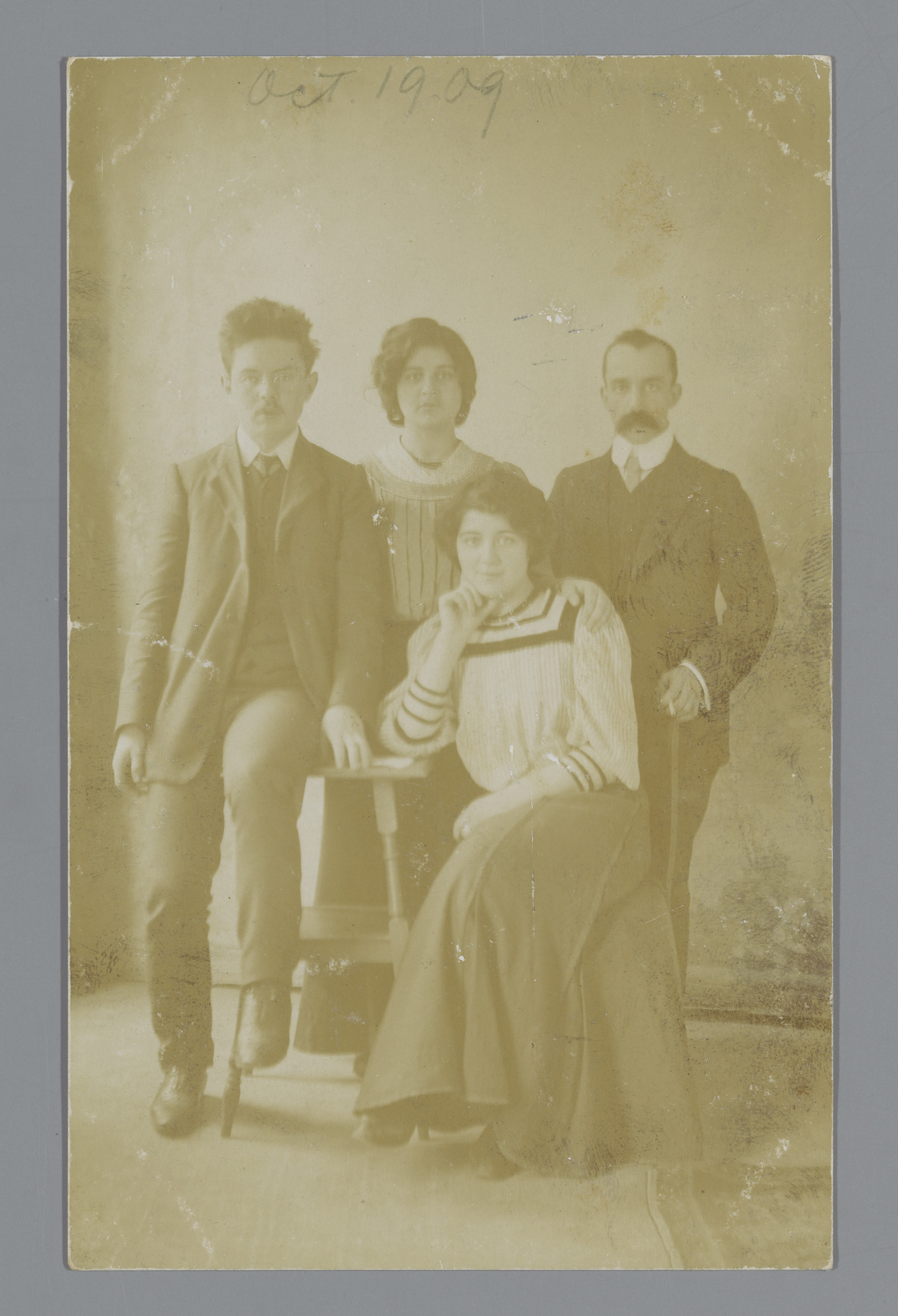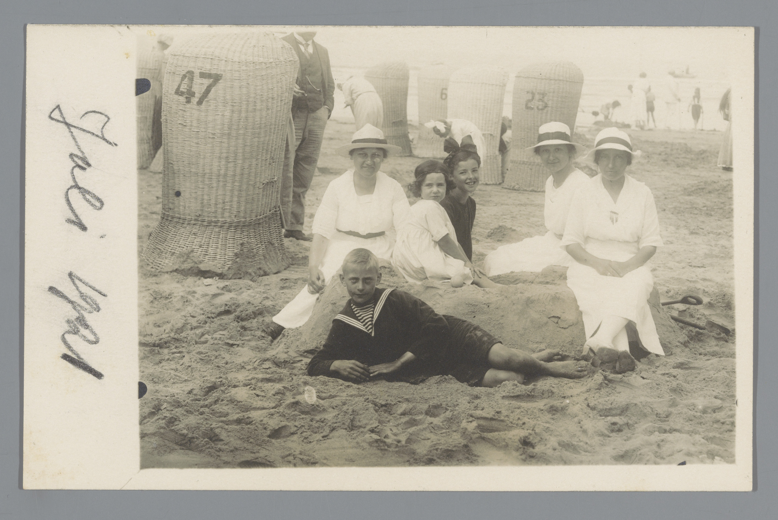 Groepsfoto van drie onbekende vrouwen en kinderen in...