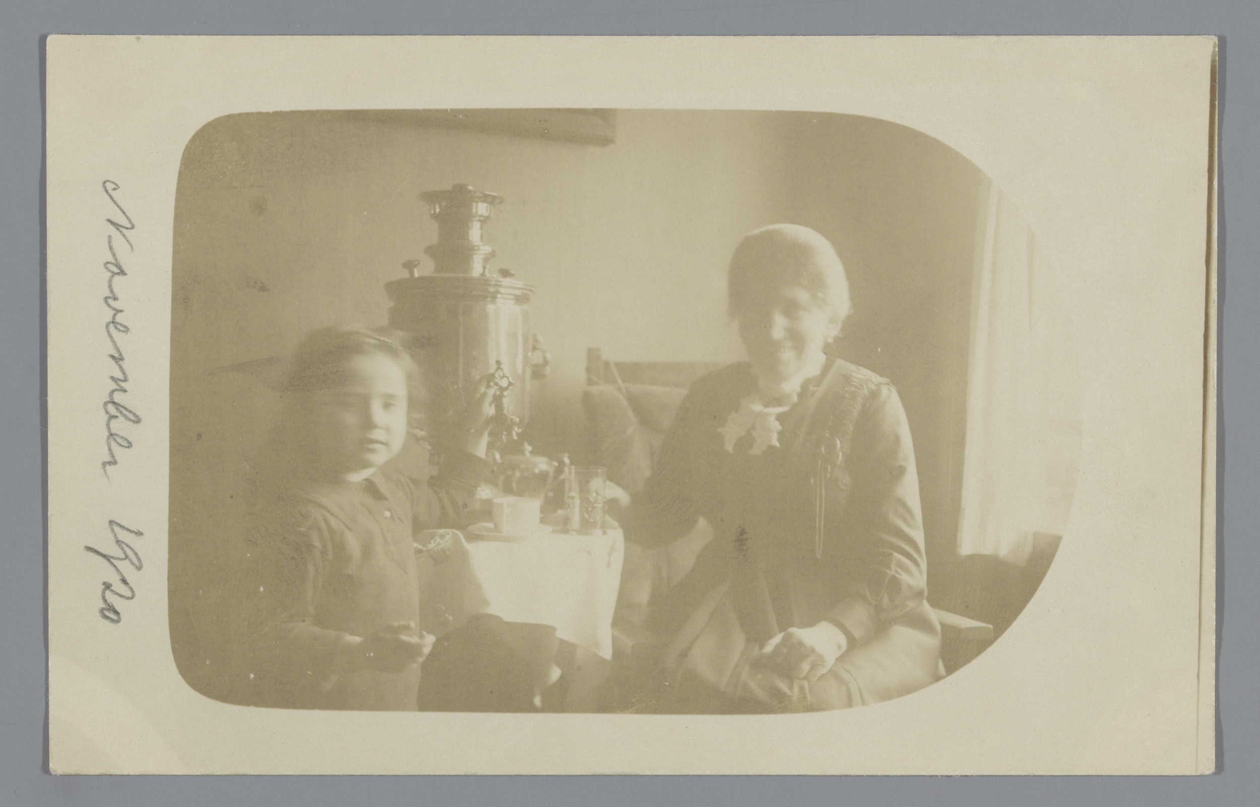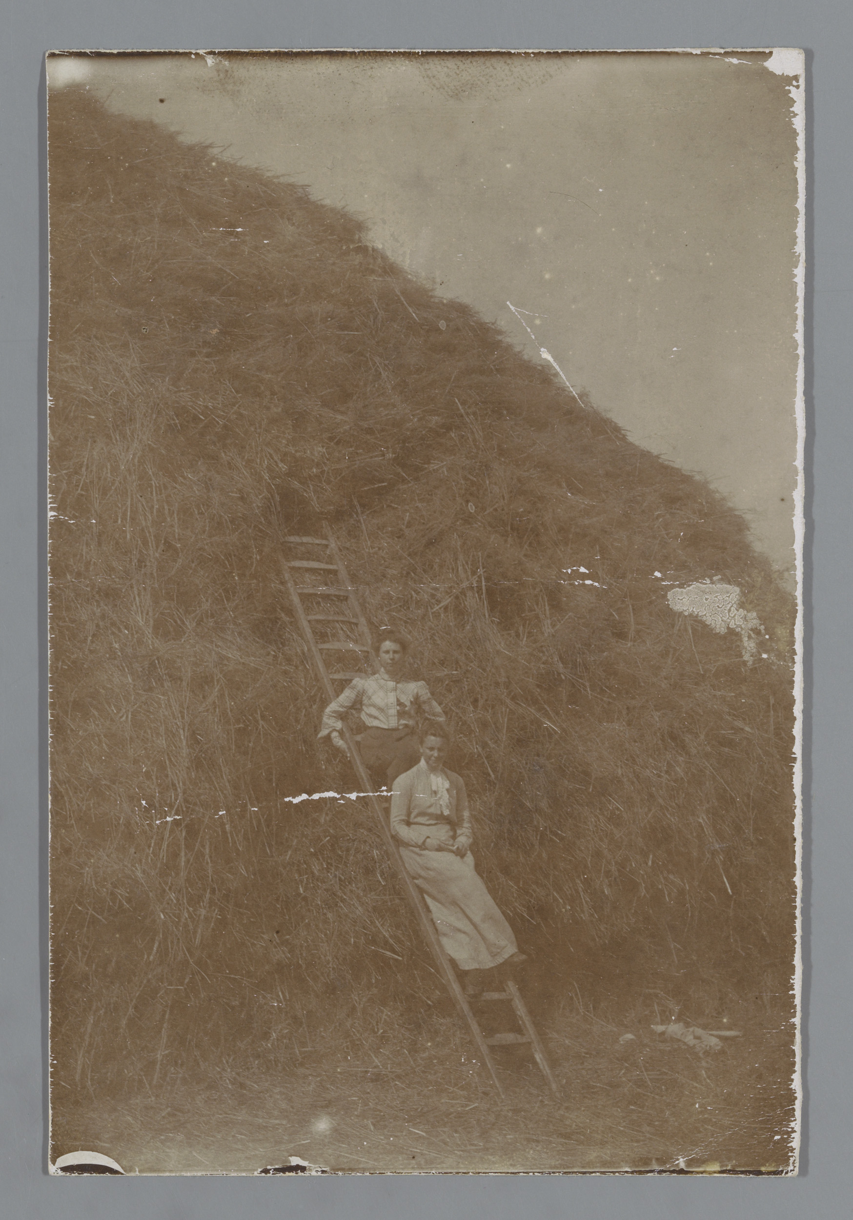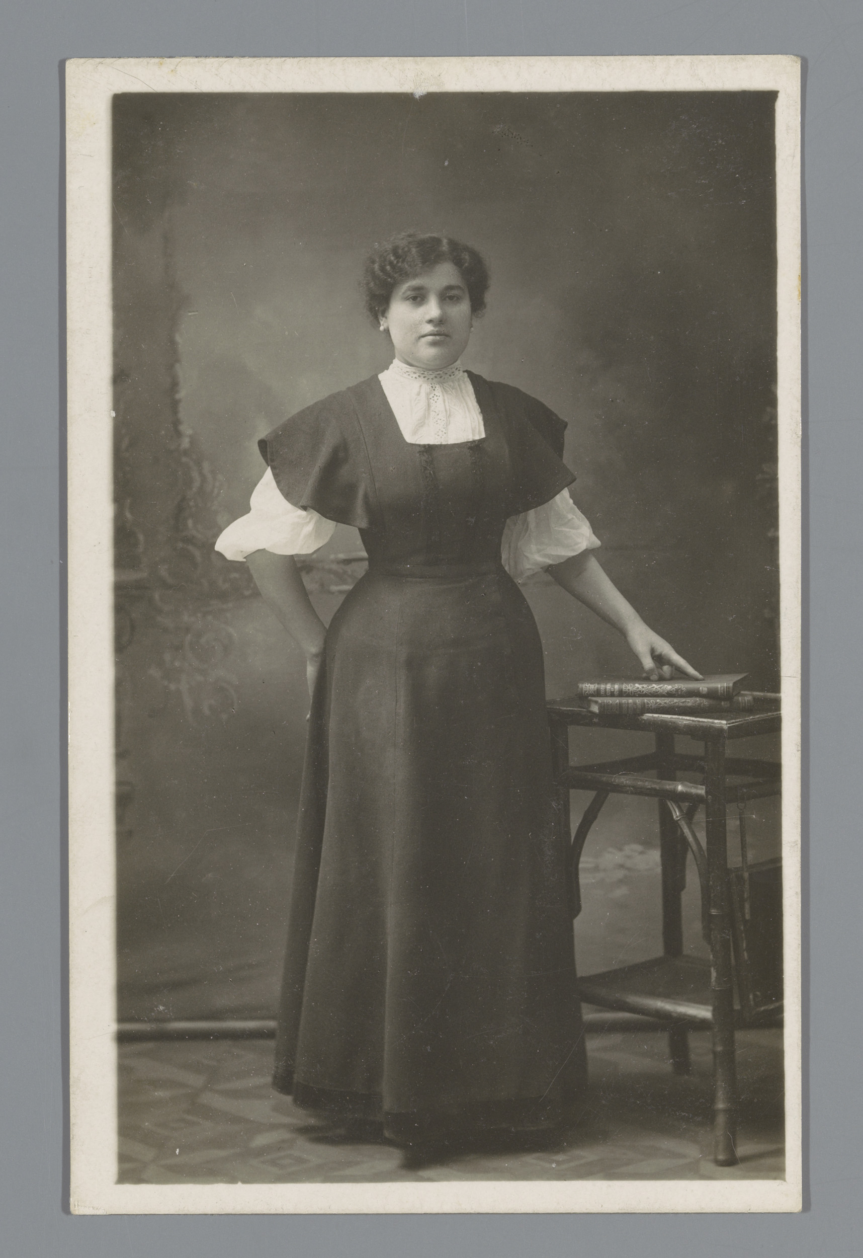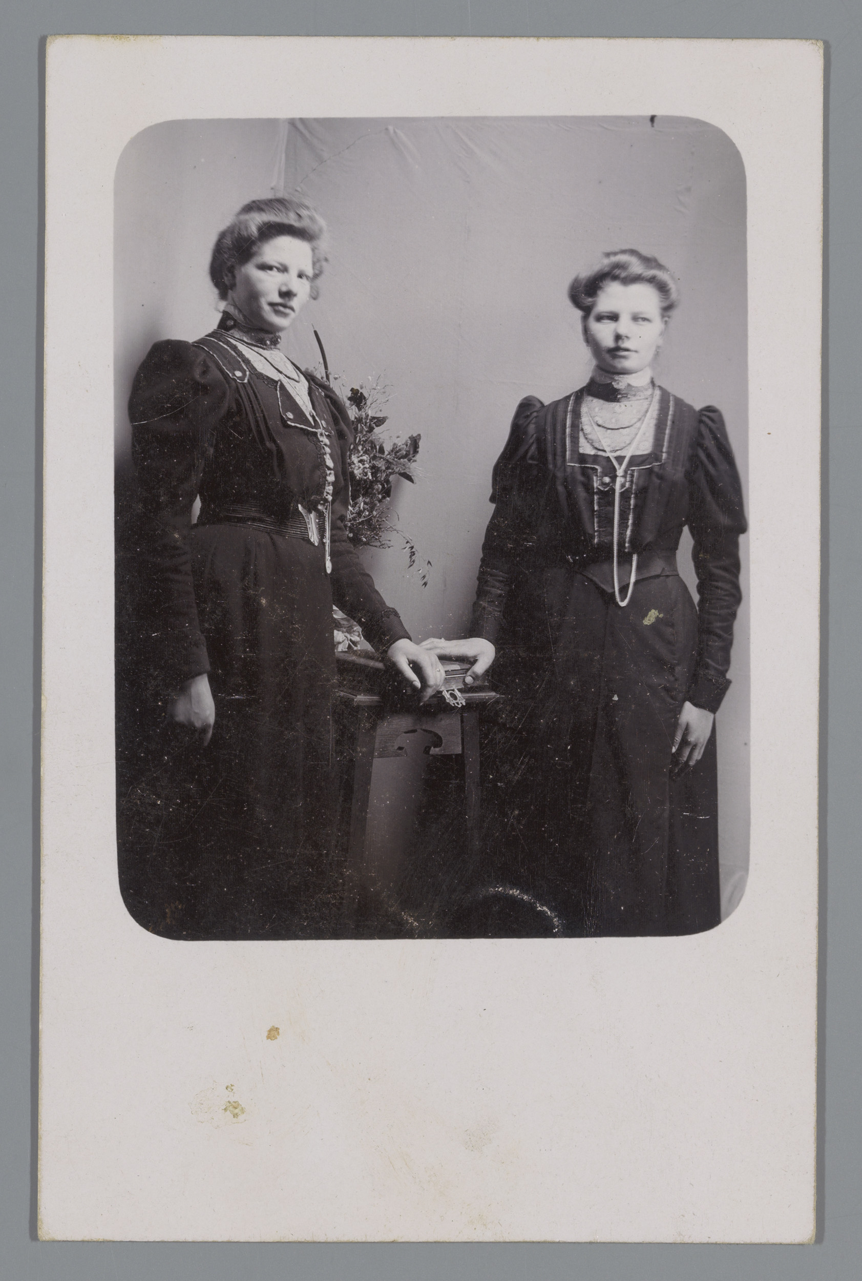 Groepsfoto van drie onbekende vrouwen en kinderen in...
