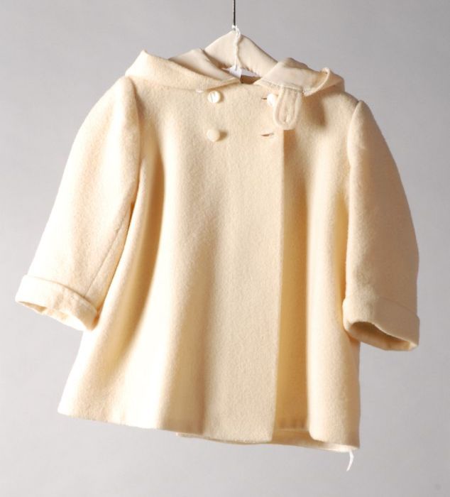 Crèmekleurige kinderjas, met capuchon, lange mouwen ...