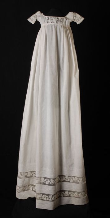 Zeer lange witte doopjurk, empirelijn, korte mouw, v...