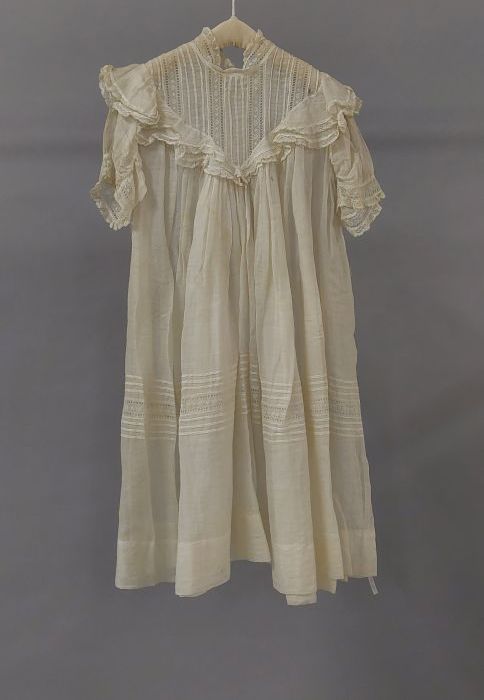 Kinderjurk van crèmekleurig batist met oprijgjes en ...