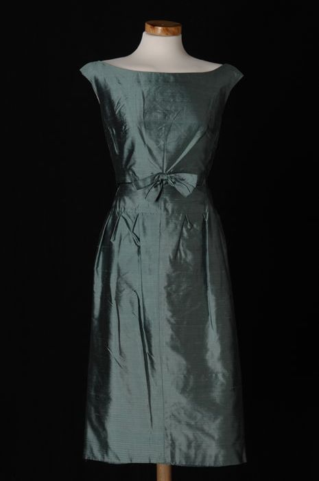Groenblauw 'zijdelook' cocktailjapon en jasje