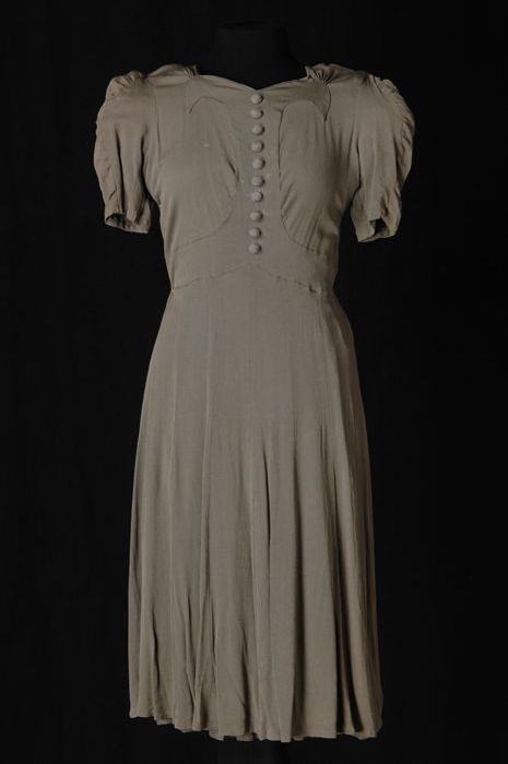Grijsgroene japon met korte mouw