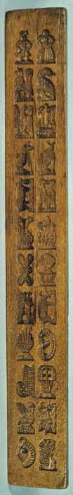 Rijtjesplank met kleine speculaasvormen: langwerpige...