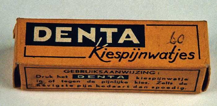 Klein langwerpig doosje, oranje met blauw en wit, me...