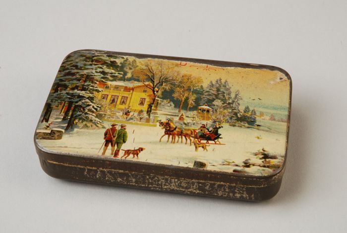 Klein rechthoekig blik met scharnierend deksel, wint...