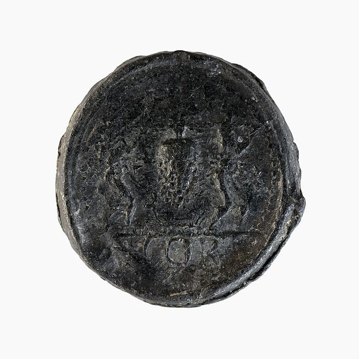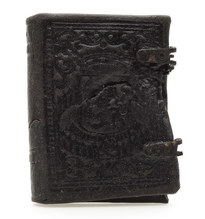 Leren boekband, met in blinddruk opgebrachte wapensc...