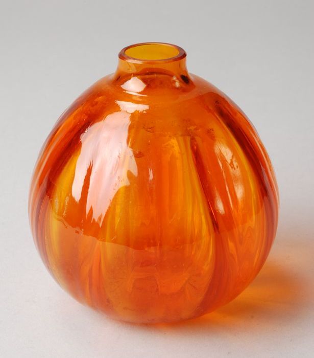 Klein oranje glazen uivormig vaasje, Julianavaasje