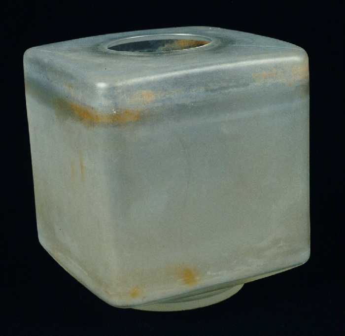 Witte matglazen vaas, kubus op rond voetje, ronde op...