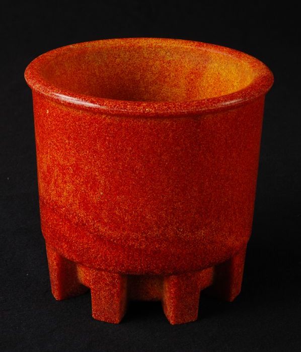Rode Graniver glazen bloempot, vrijwel cilindrisch m...