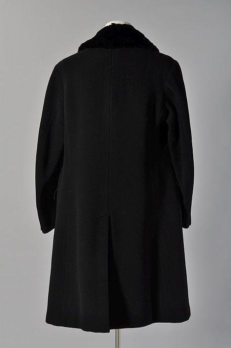 Kuitlange herenjas van zwarte wol met zwarte bontkra...