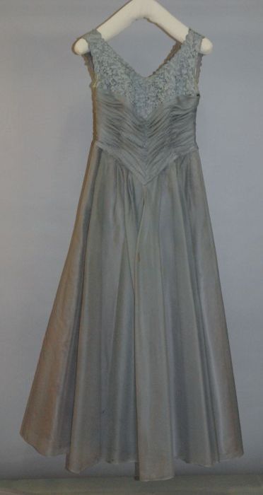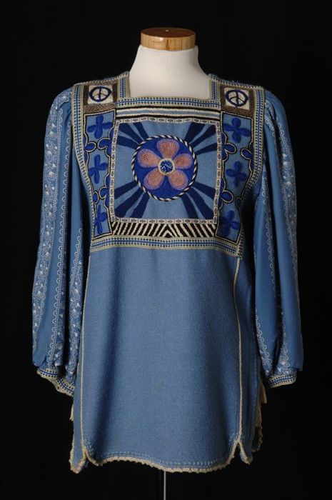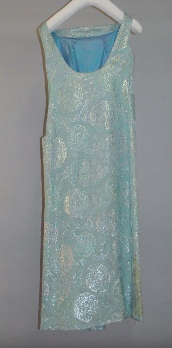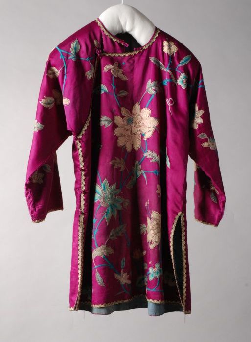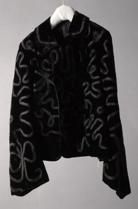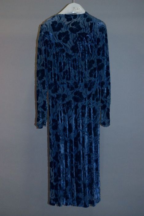 Blauwe japon met uitgespaarde fluwelen bloemen