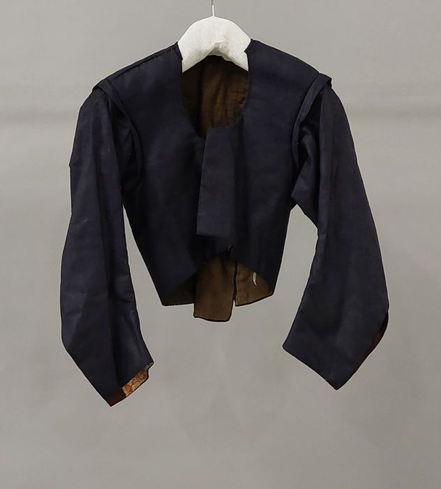 Blauw jakje, met onderaan de mouwen stukjes blauw ro...