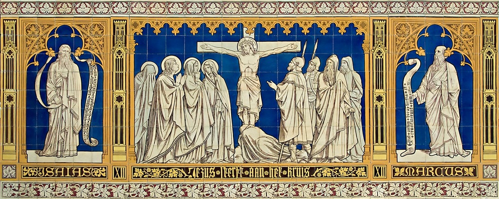 Tegeltableau, voorstellende de 8e statie van een kru...