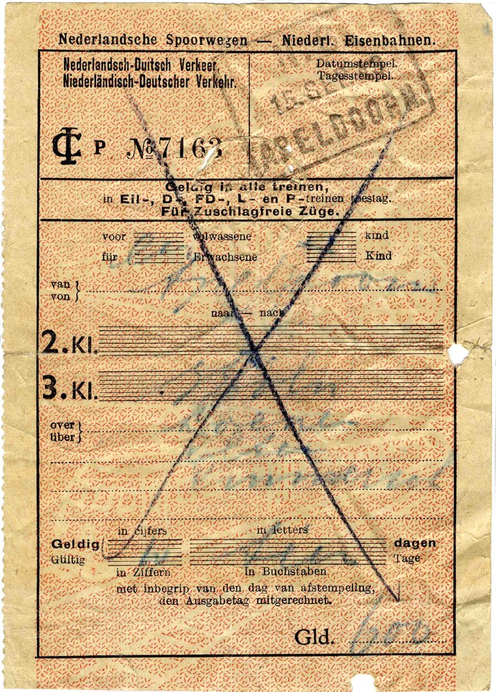 treinkaart, 3e klasse, Apeldoorn-Keulen, 15-09-1943