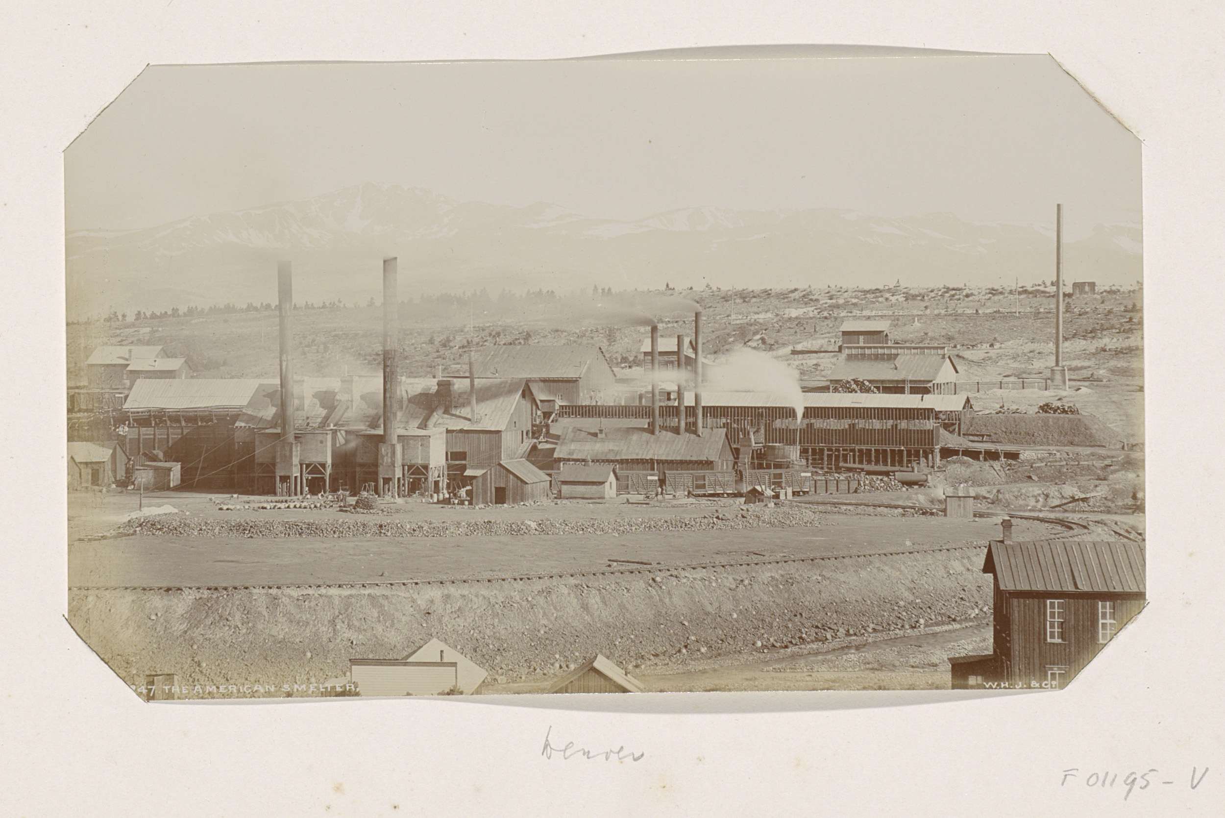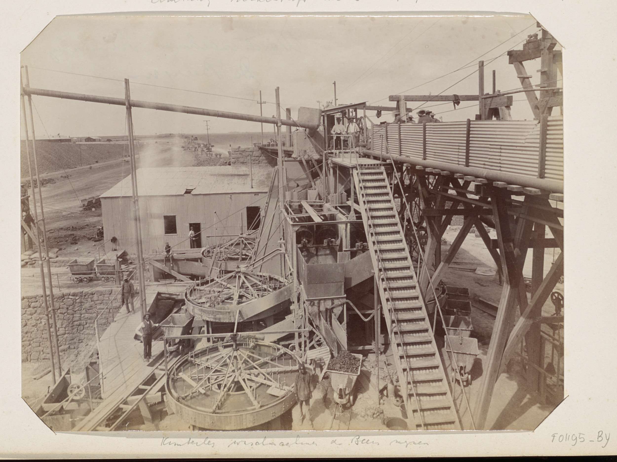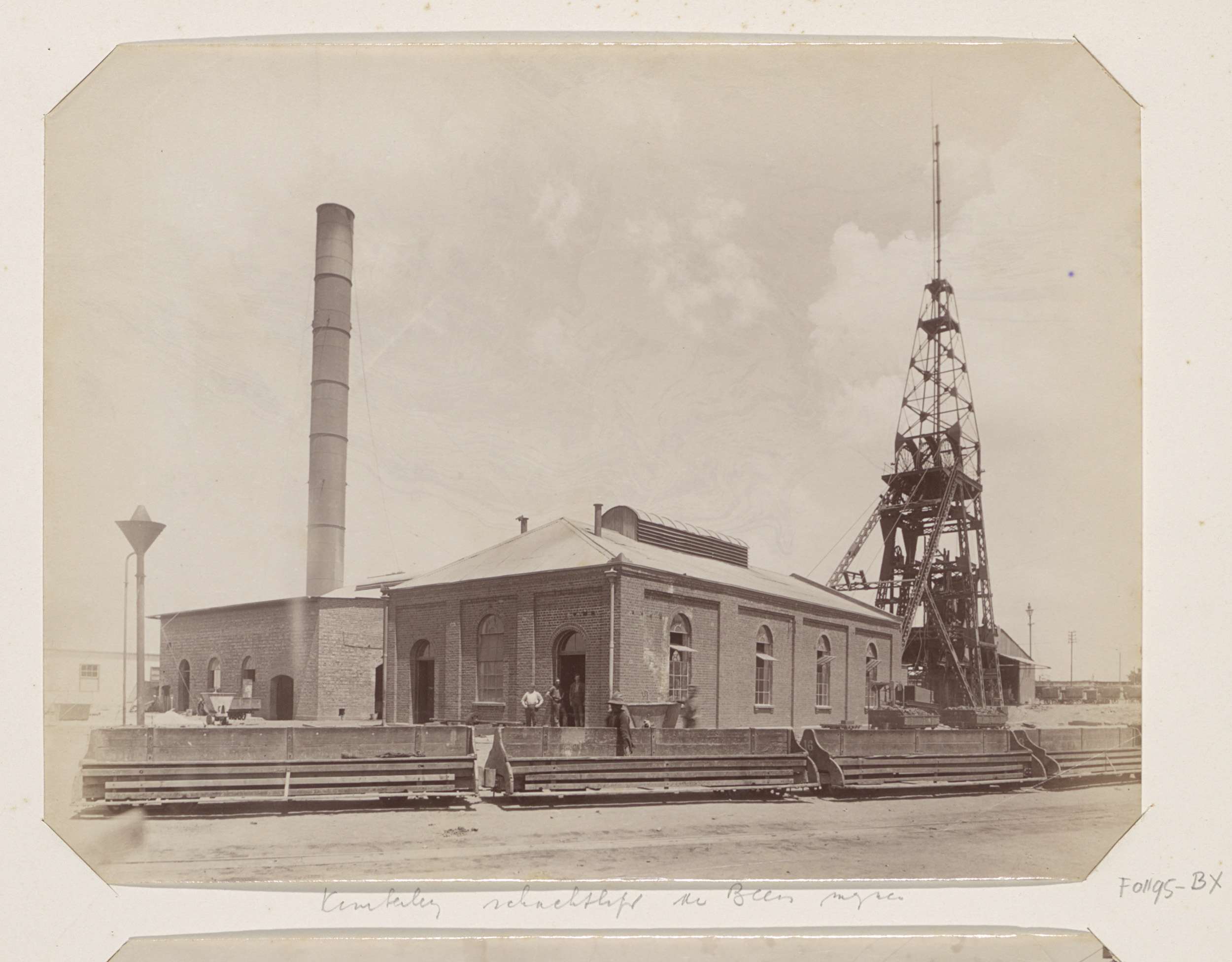Bedrijfsgebouwen en een trein van de De Beersmijnen ...