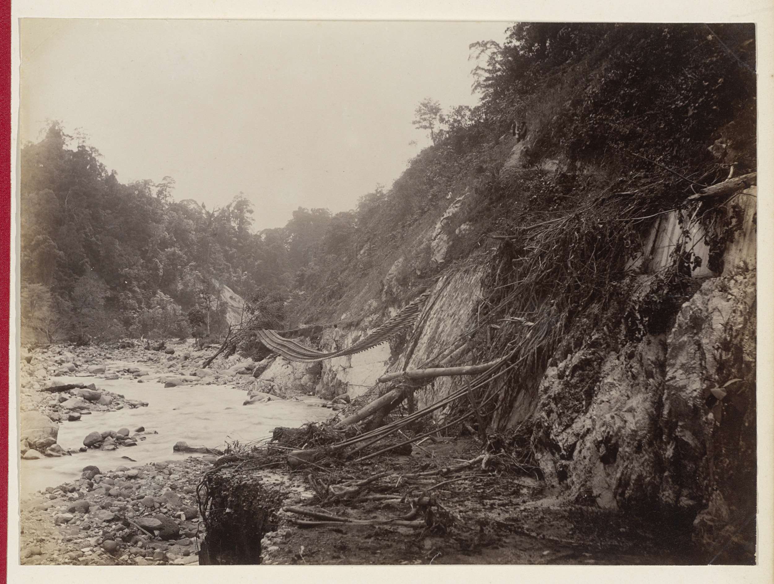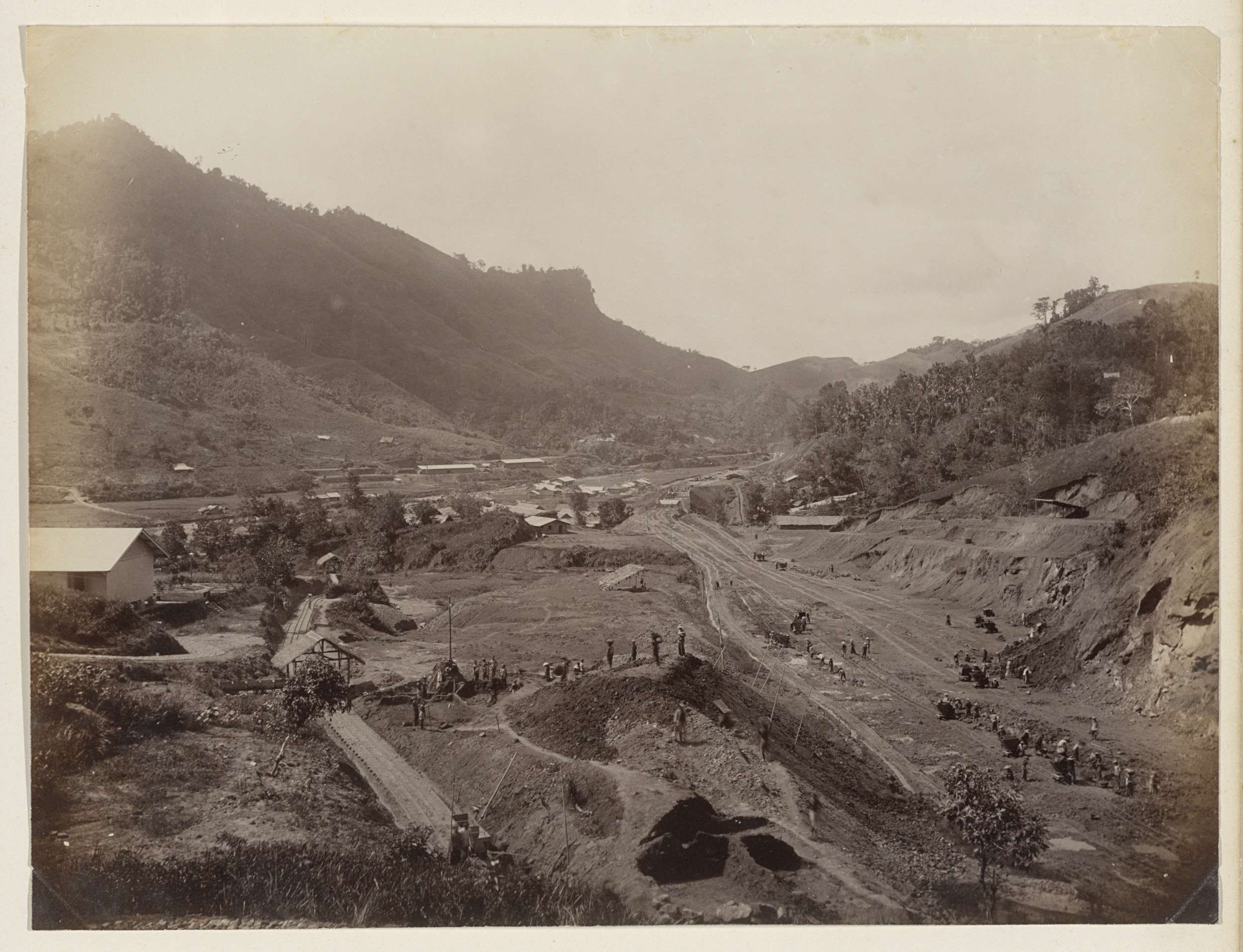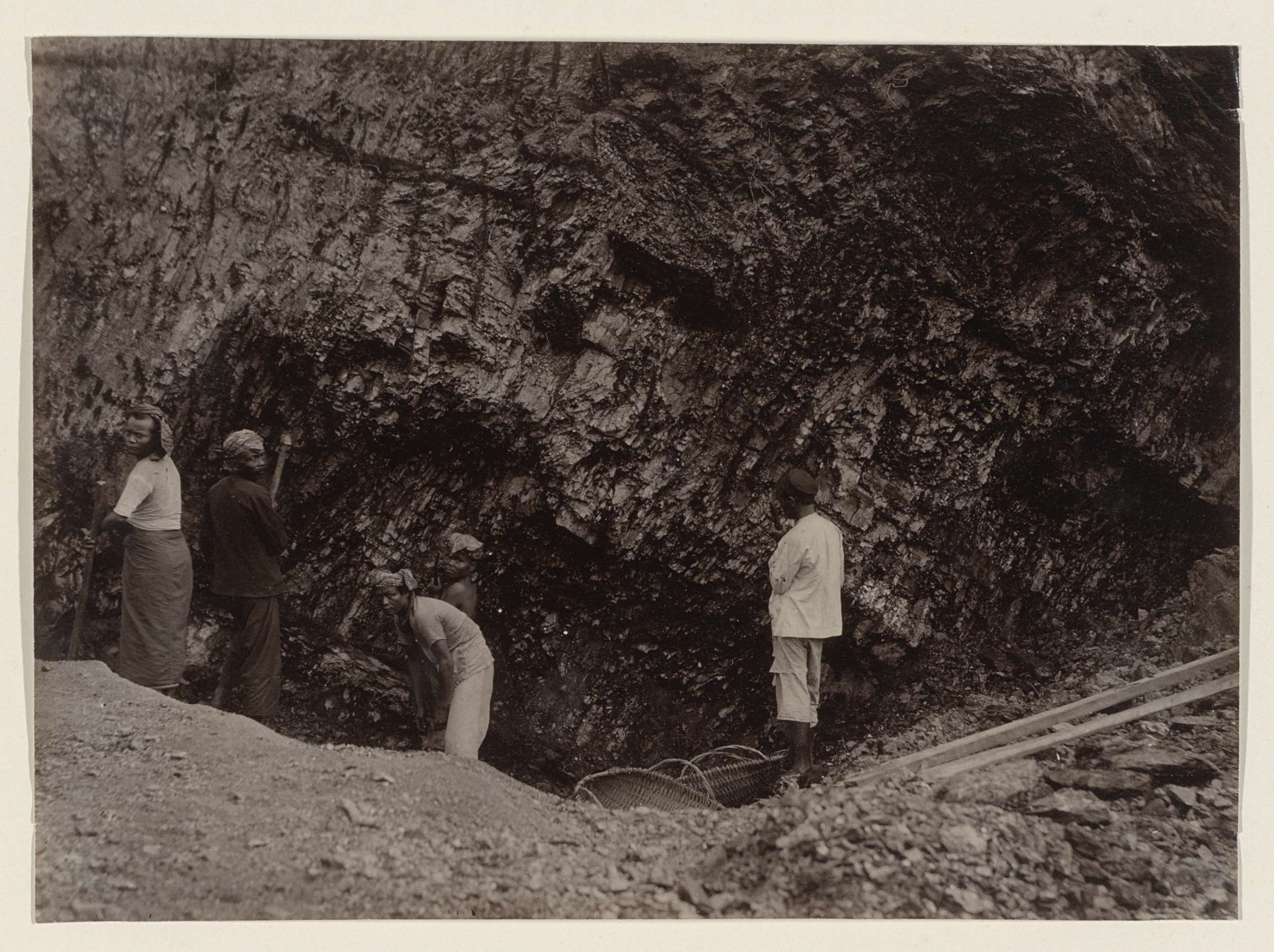 Mensen bij een afgraving in Nederlands-Indië
