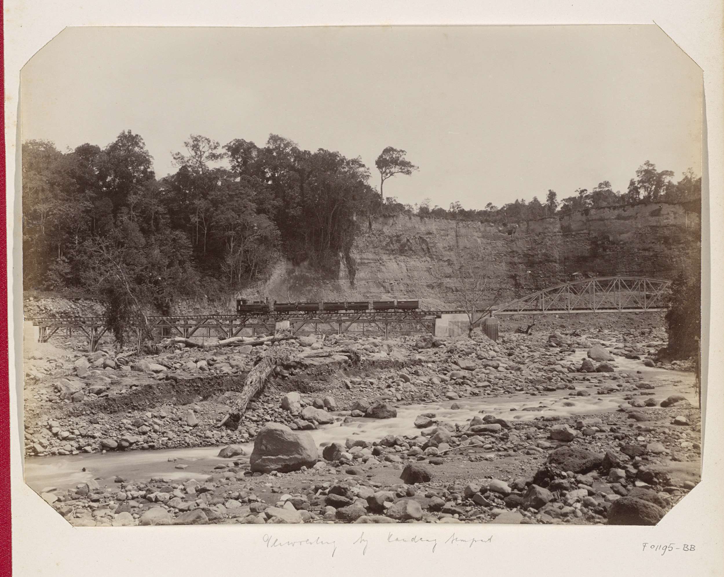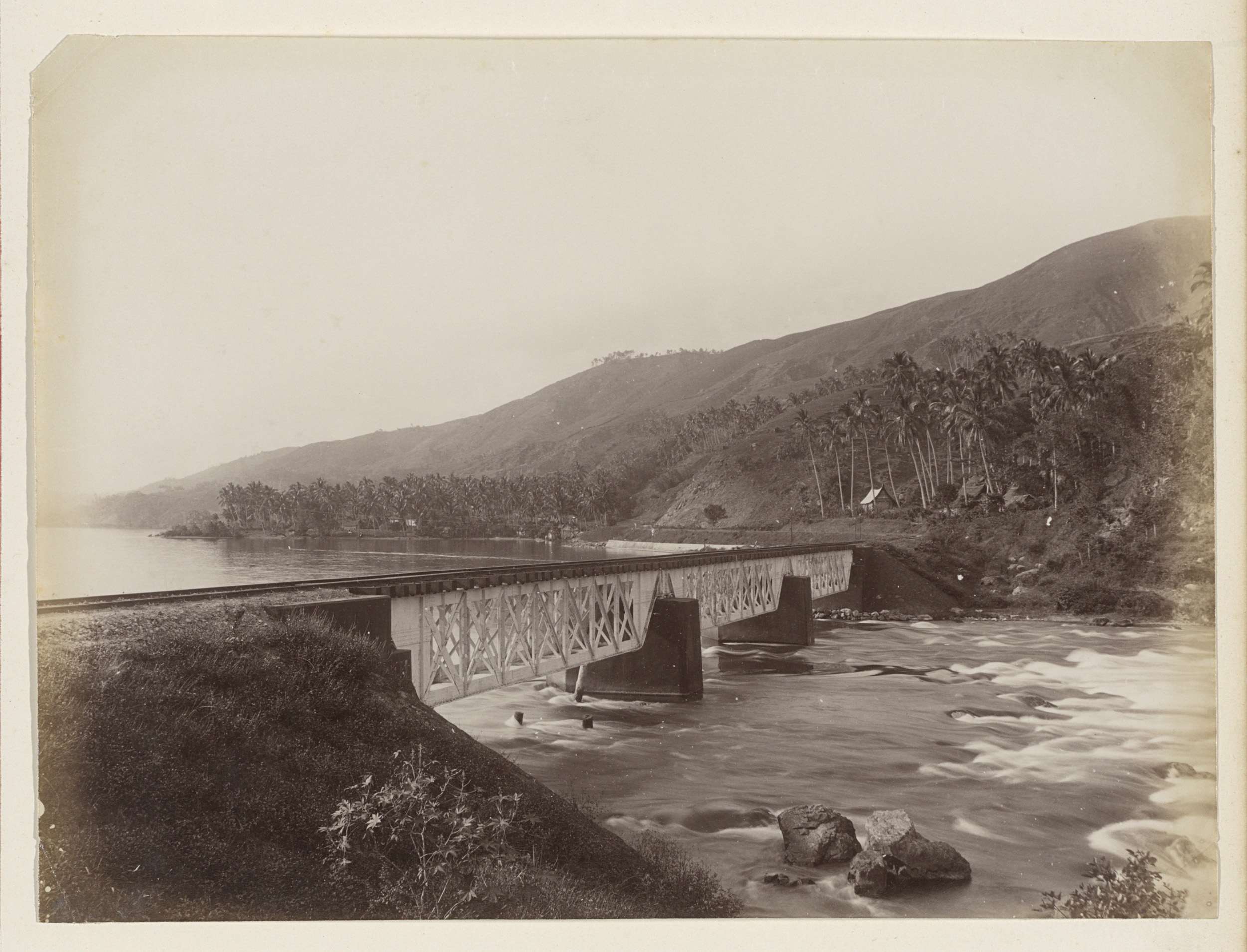 Spoorwegbrug over Ombilinrivier bij het Singkarakmeer