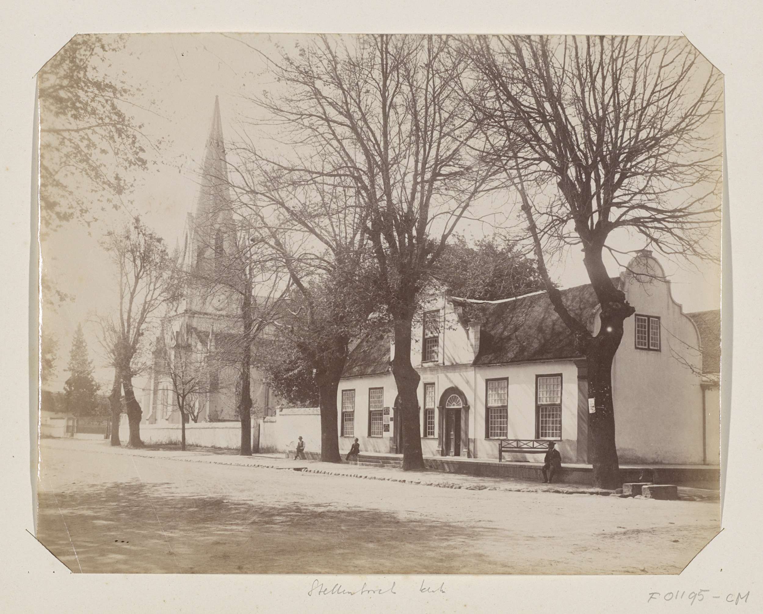 Straat met een huis en een kerk in Stellenbosch