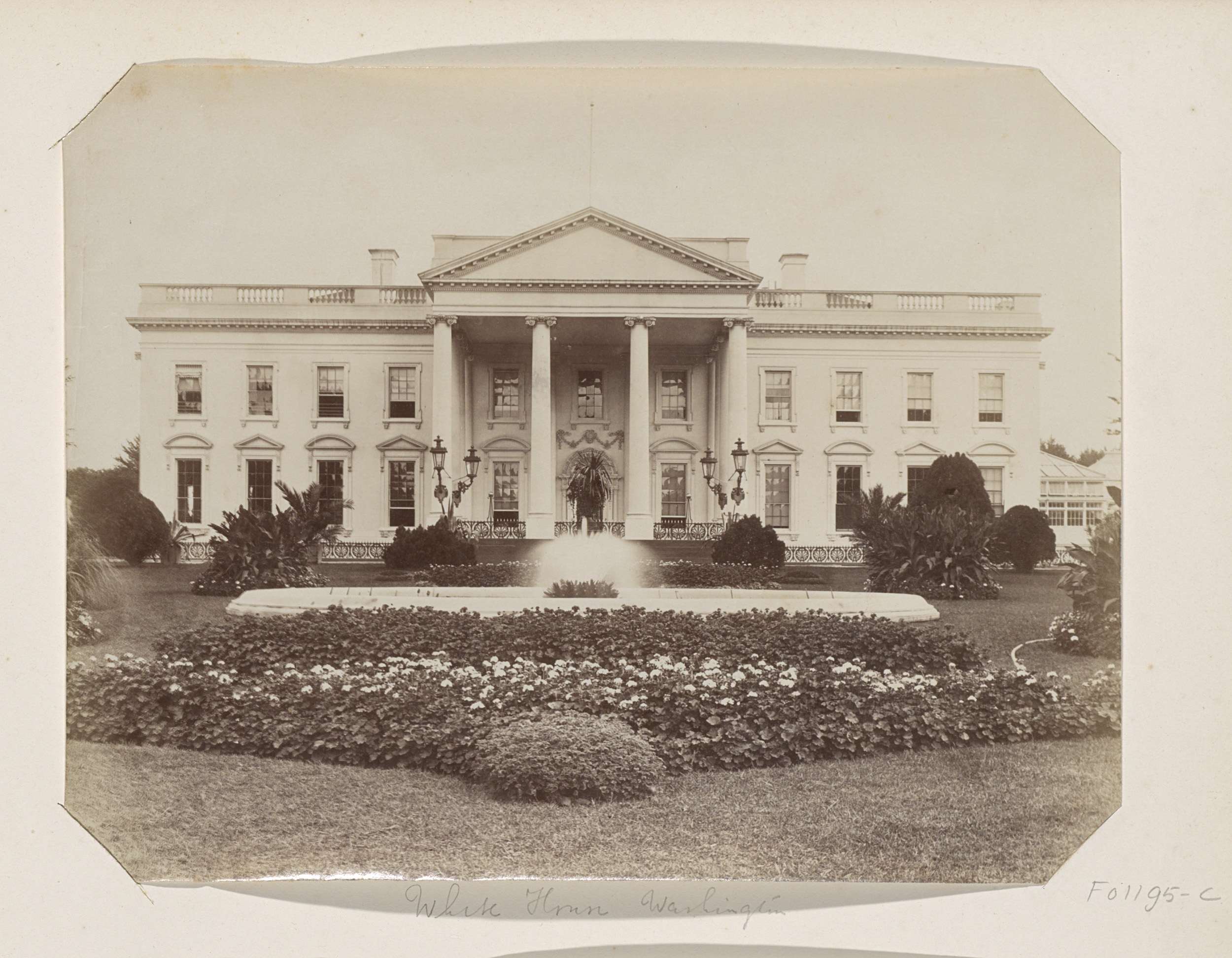 Voorgevel en voortuin van het Witte Huis in Washingt...