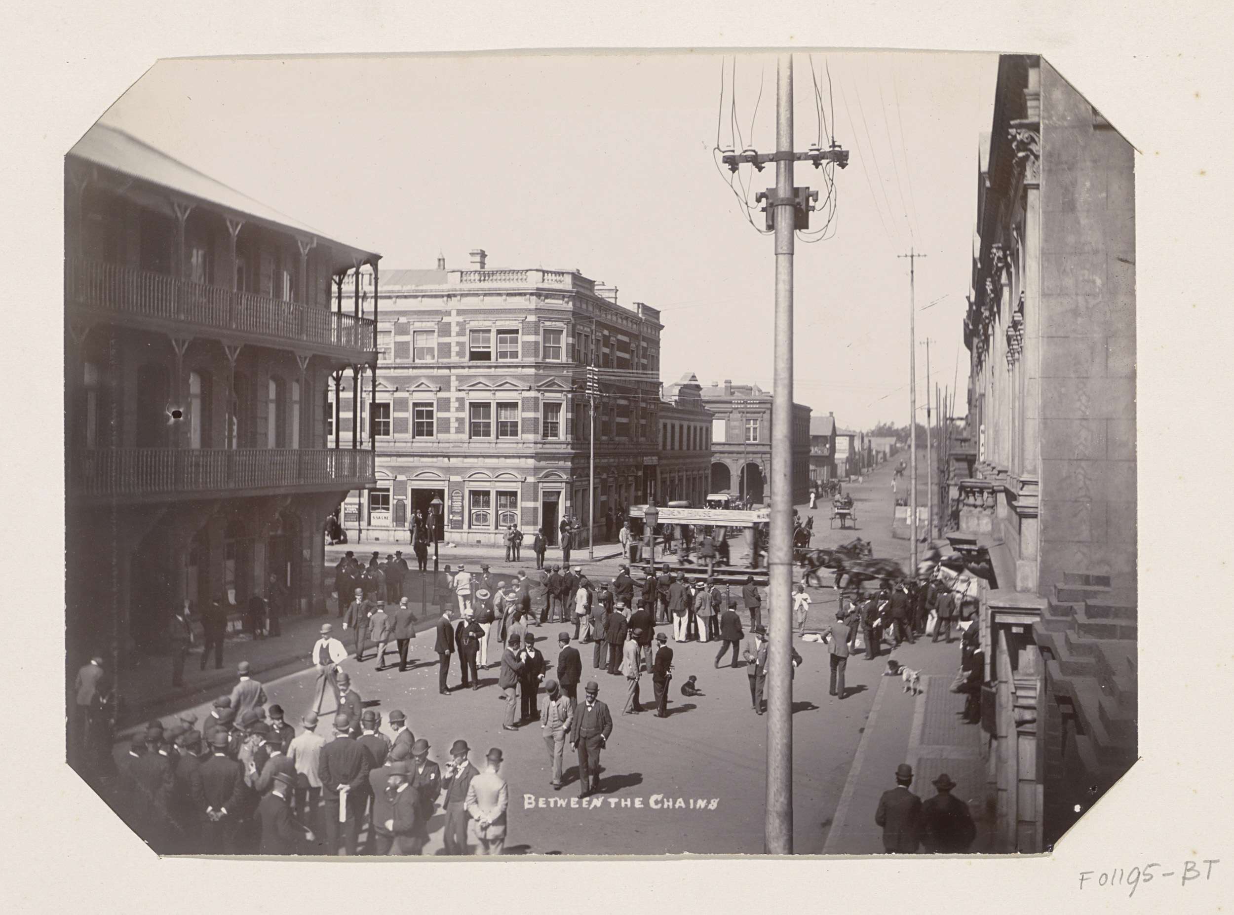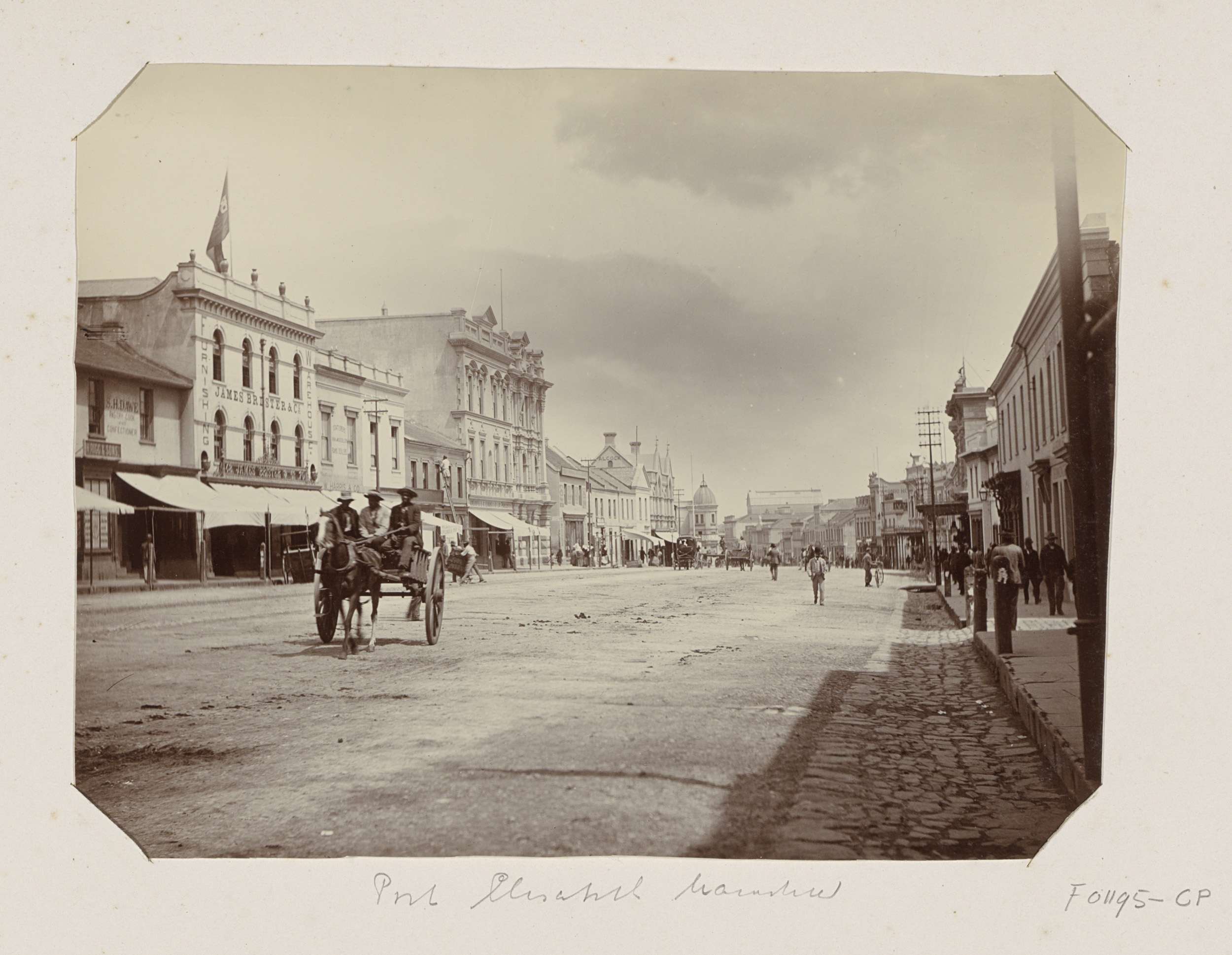 Voorbijgangers, paarden en koetsen in Church Street ...