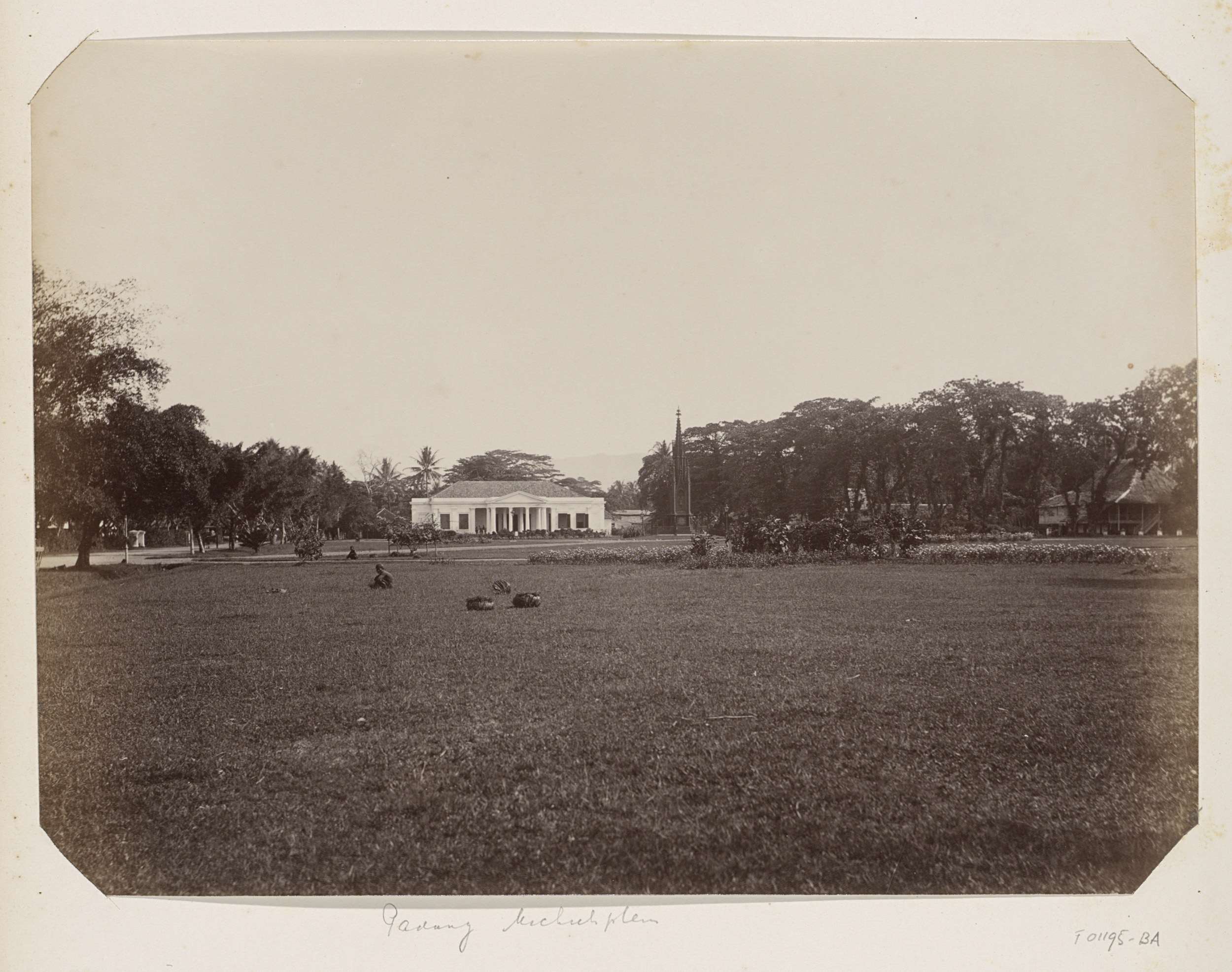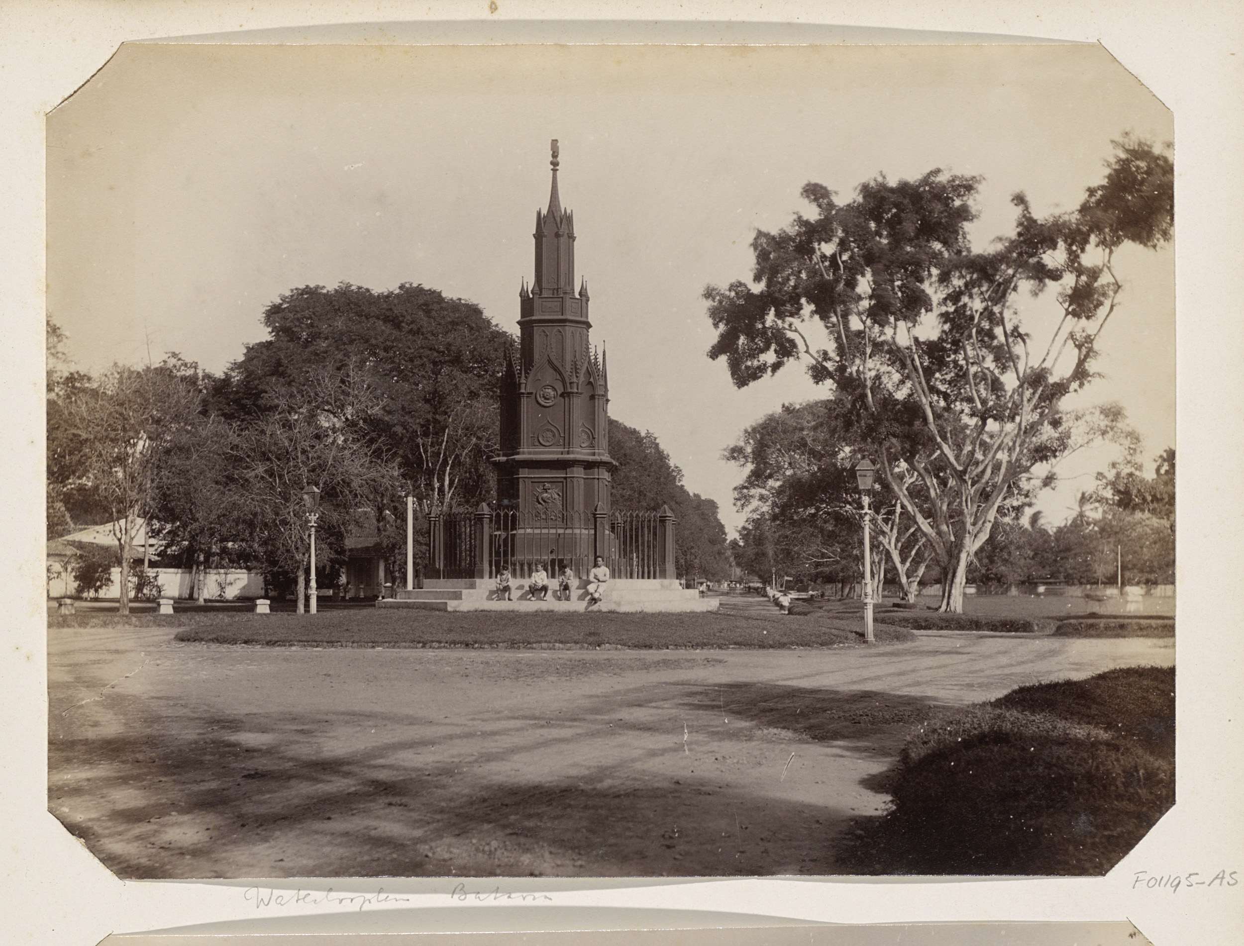 Waterlooplein in Batavia met in het midden het monum...