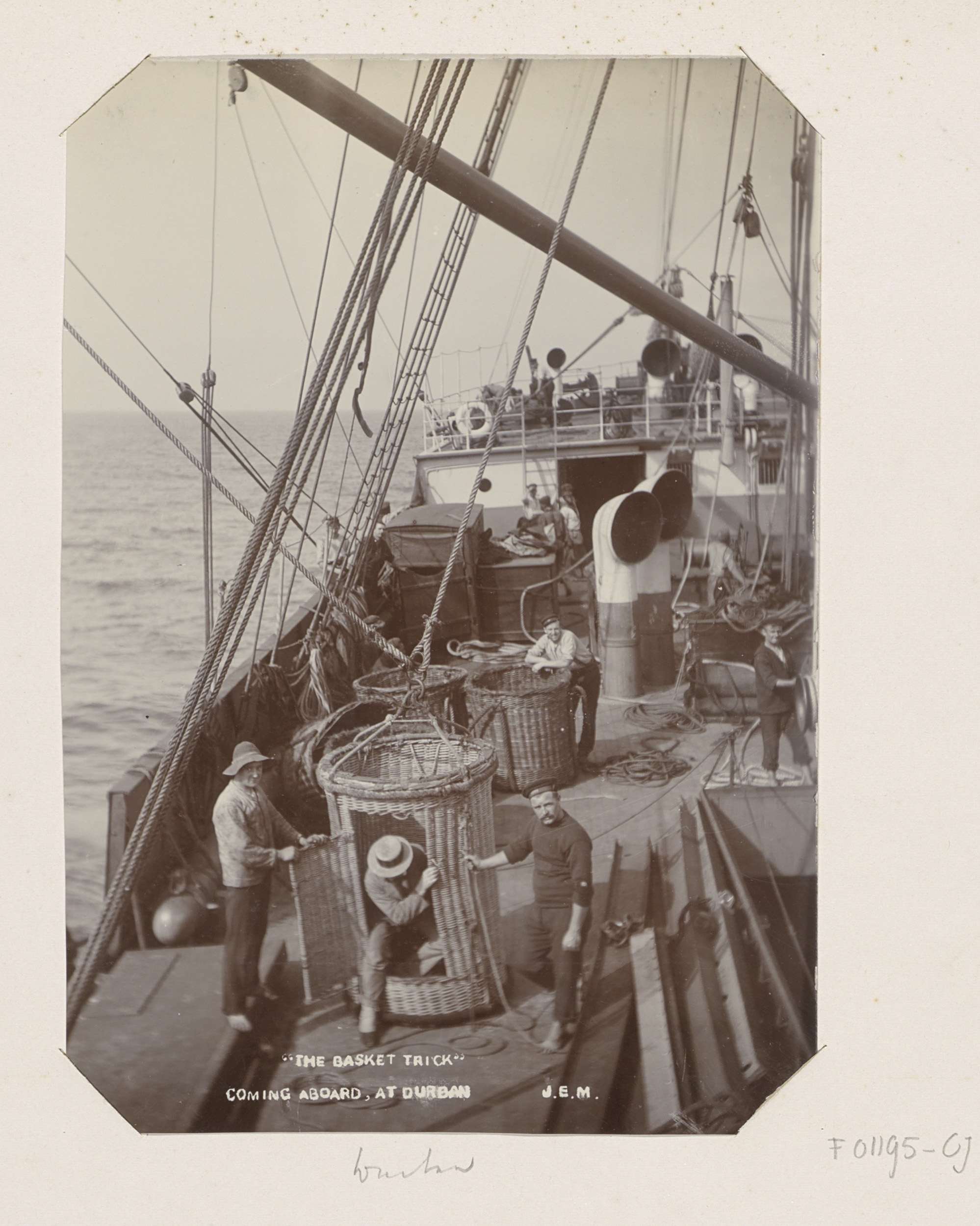 Man wordt in een mand aan boord getakeld