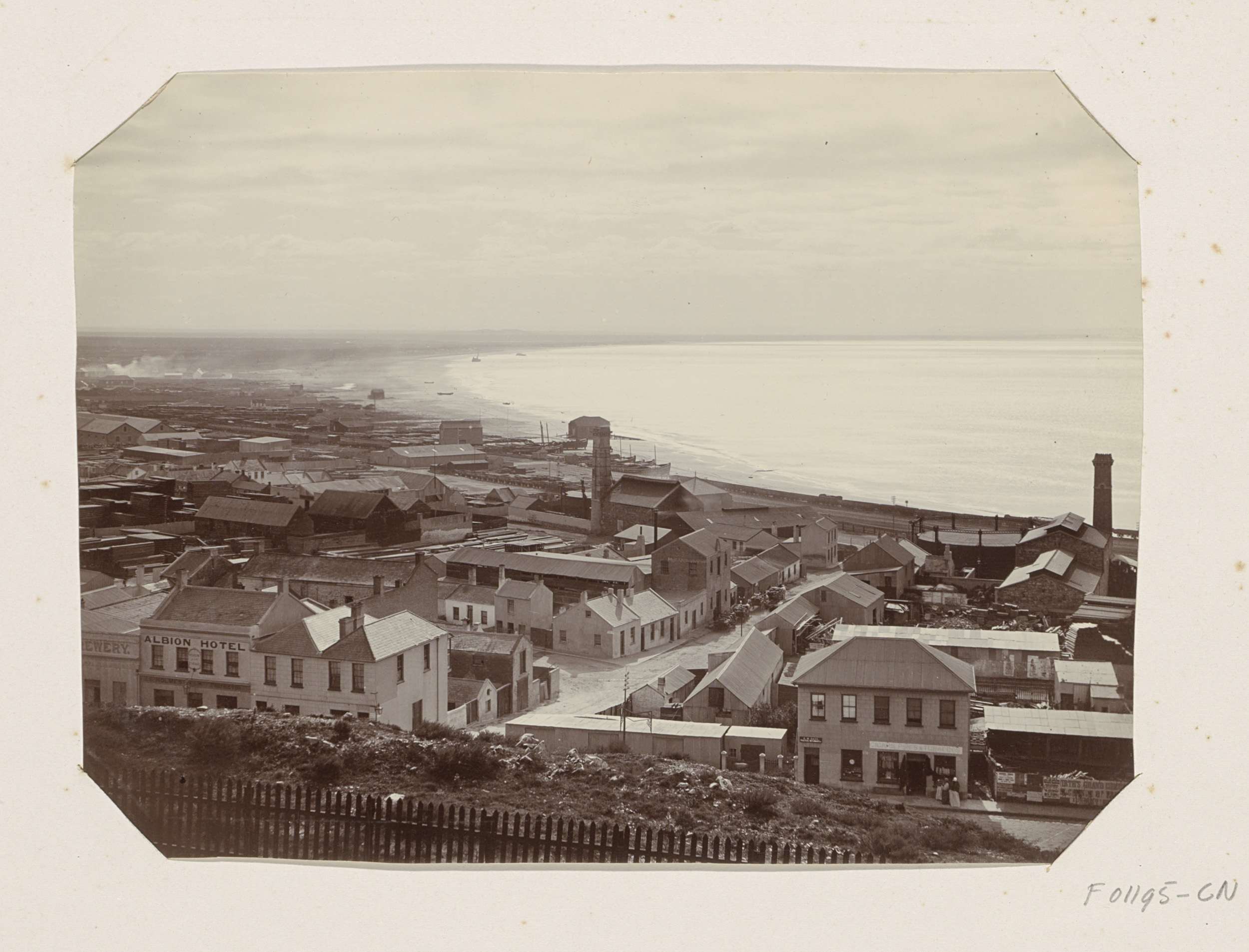 Stad met industrie aan zee, vermoedelijk in Zuid-Afrika