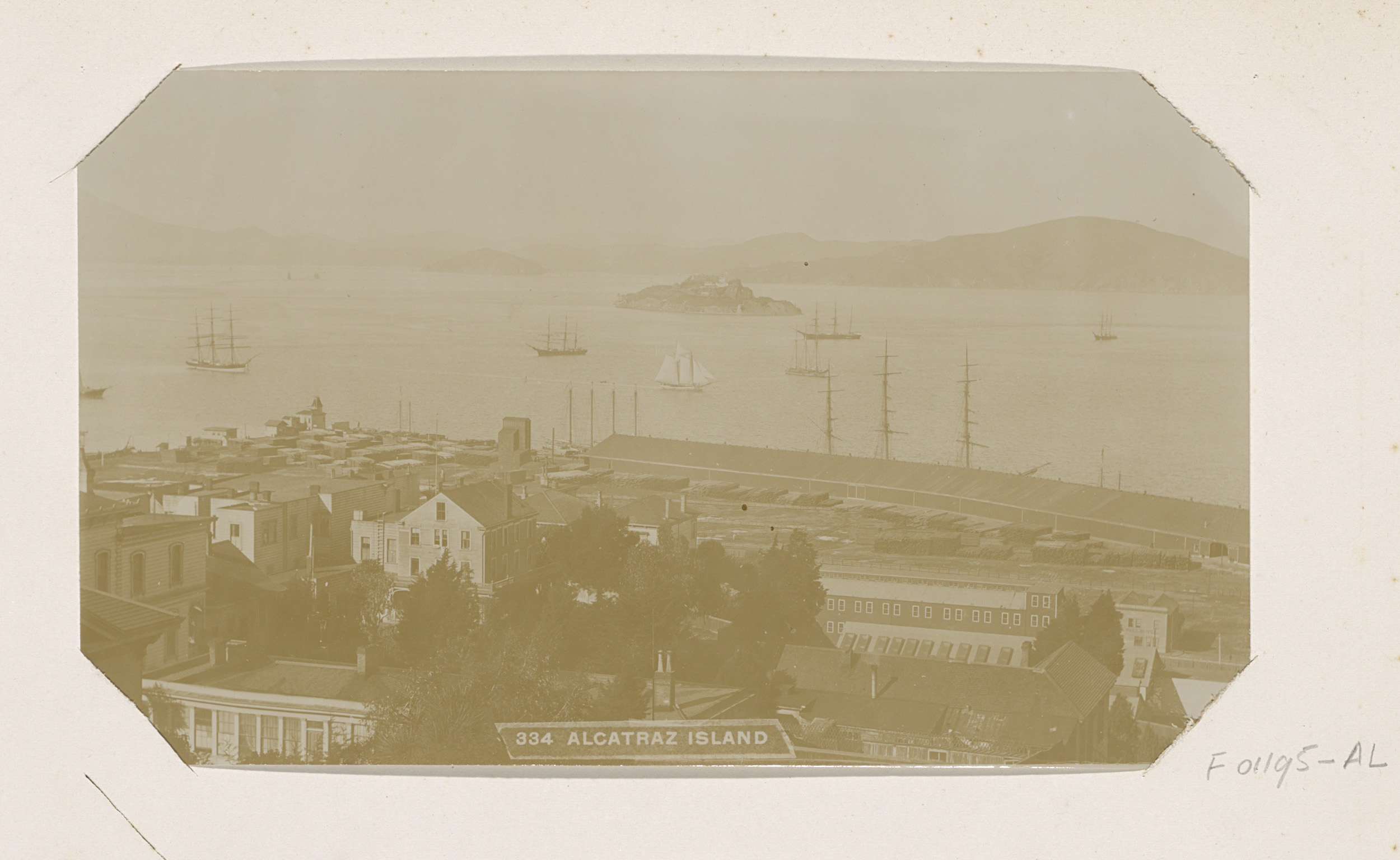 Gezicht op het eiland Alcatraz in de baai van San Fr...