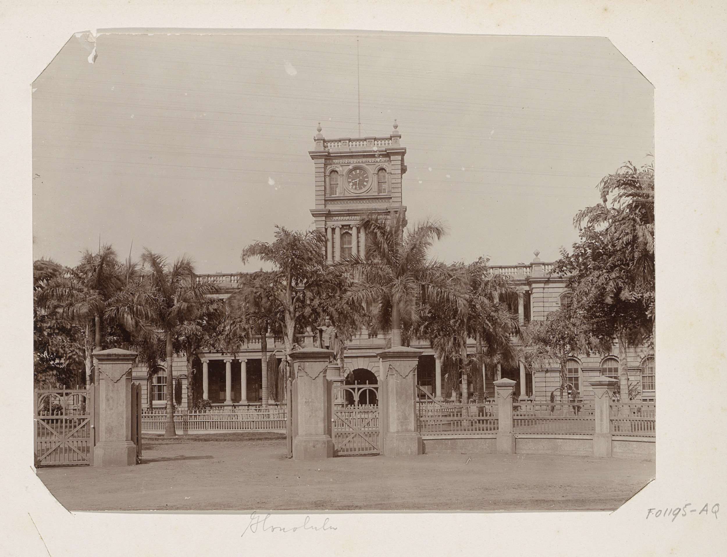 Overheidsgebouw Aliiolani Hale met palmen en het sta...