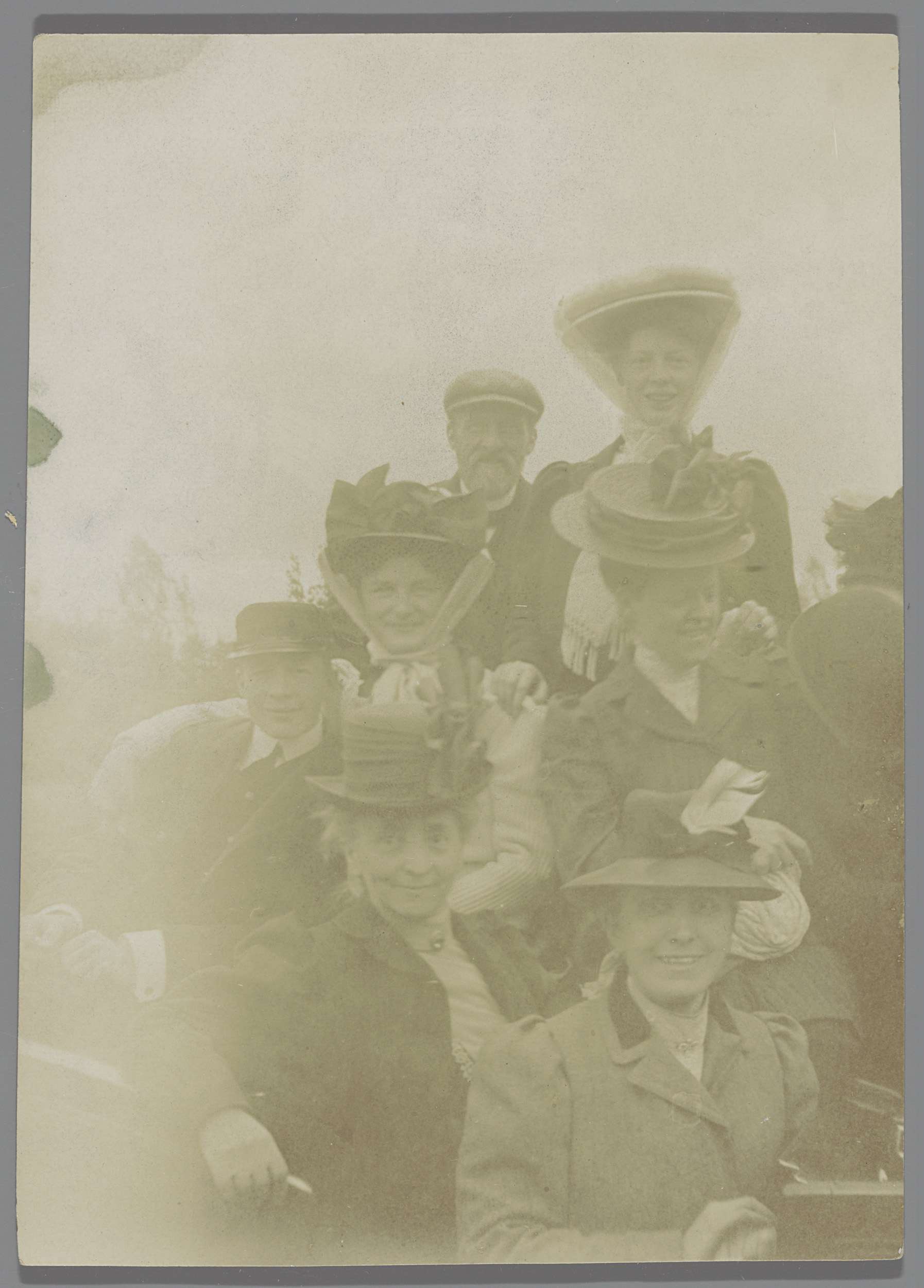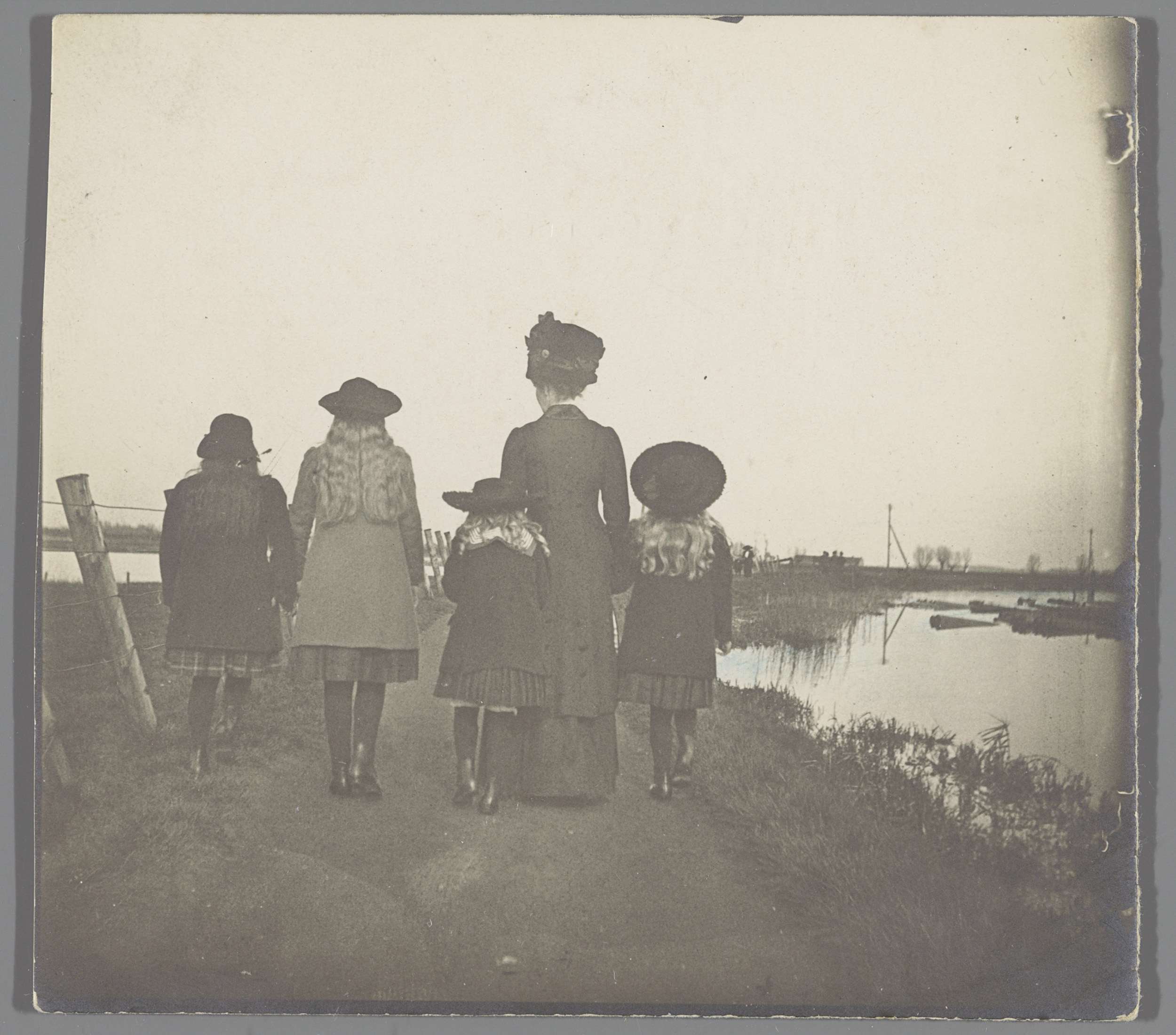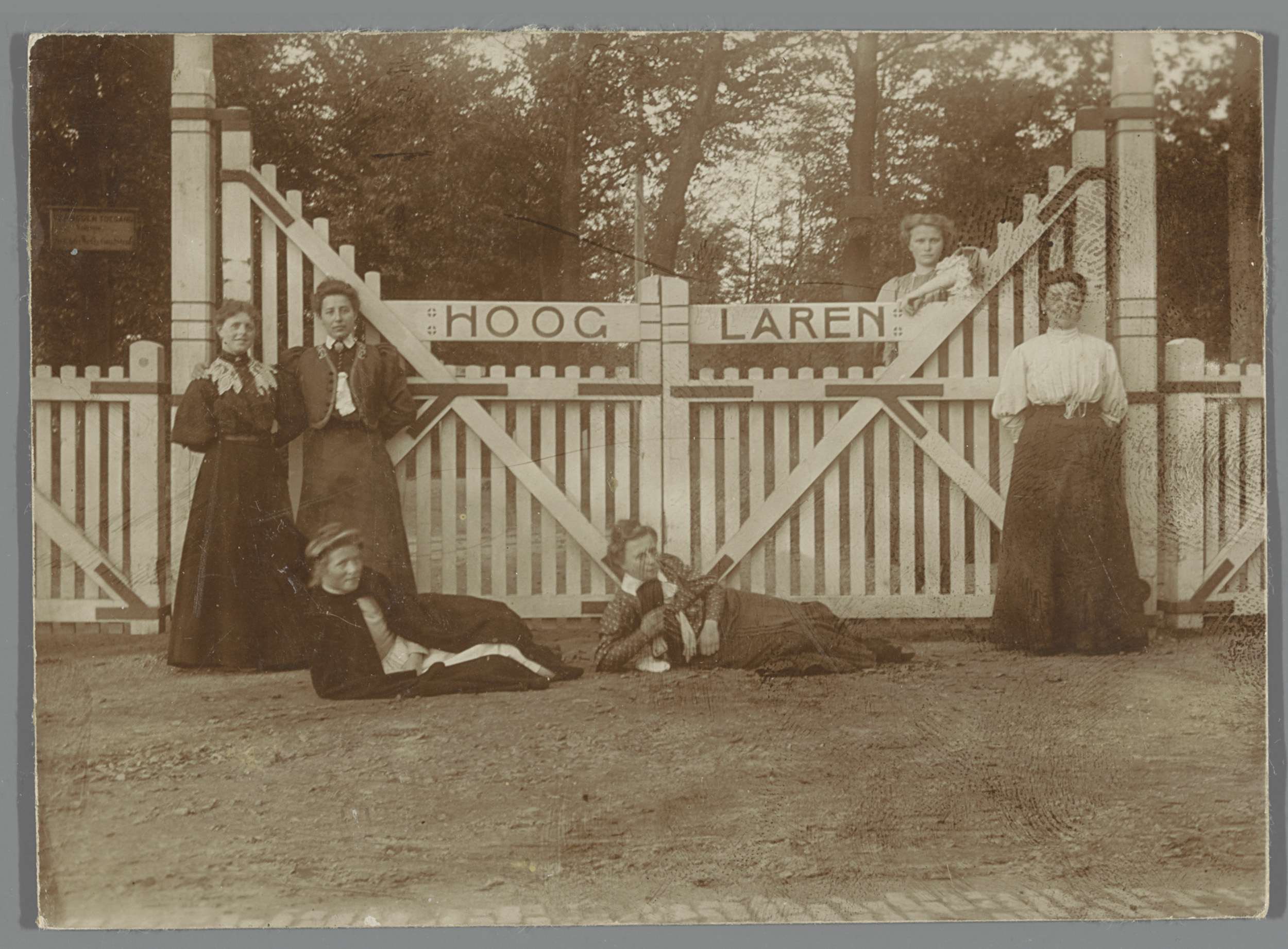 Vrouw met twee jongens op het bordes voor Hotel Keiz...