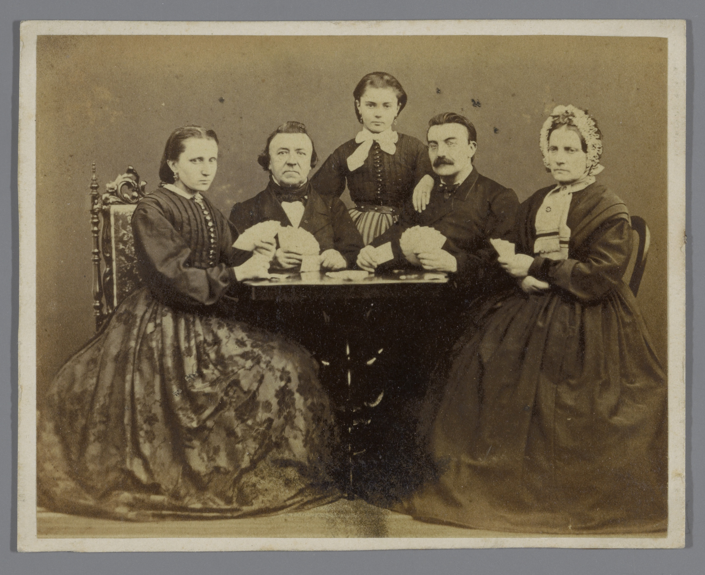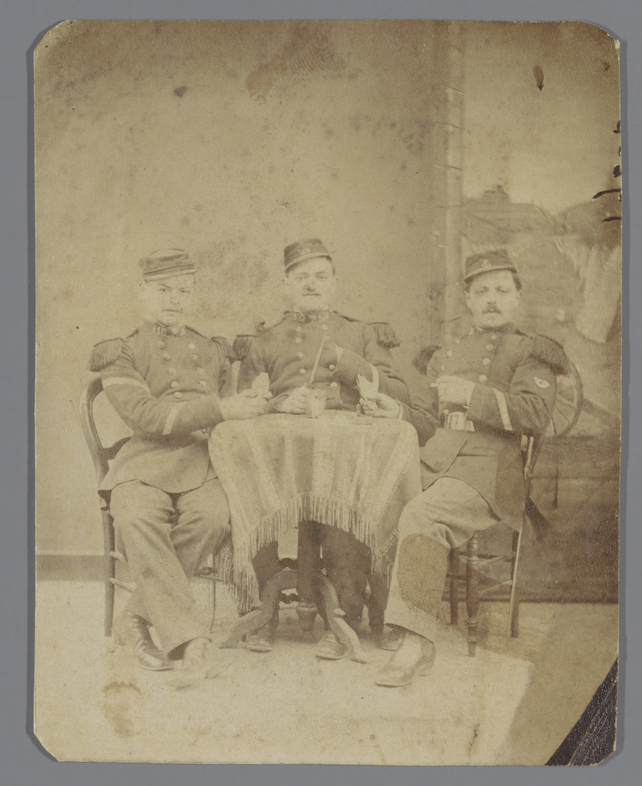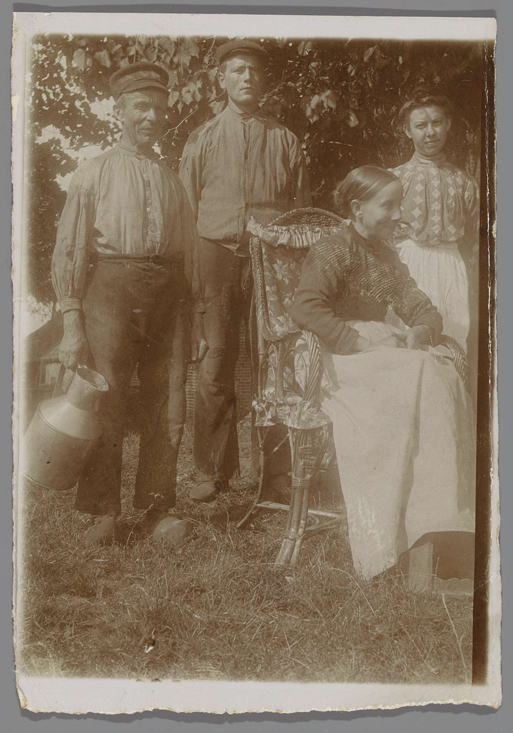 Portret van vier soldaten rond een kar (vermoedelijk...