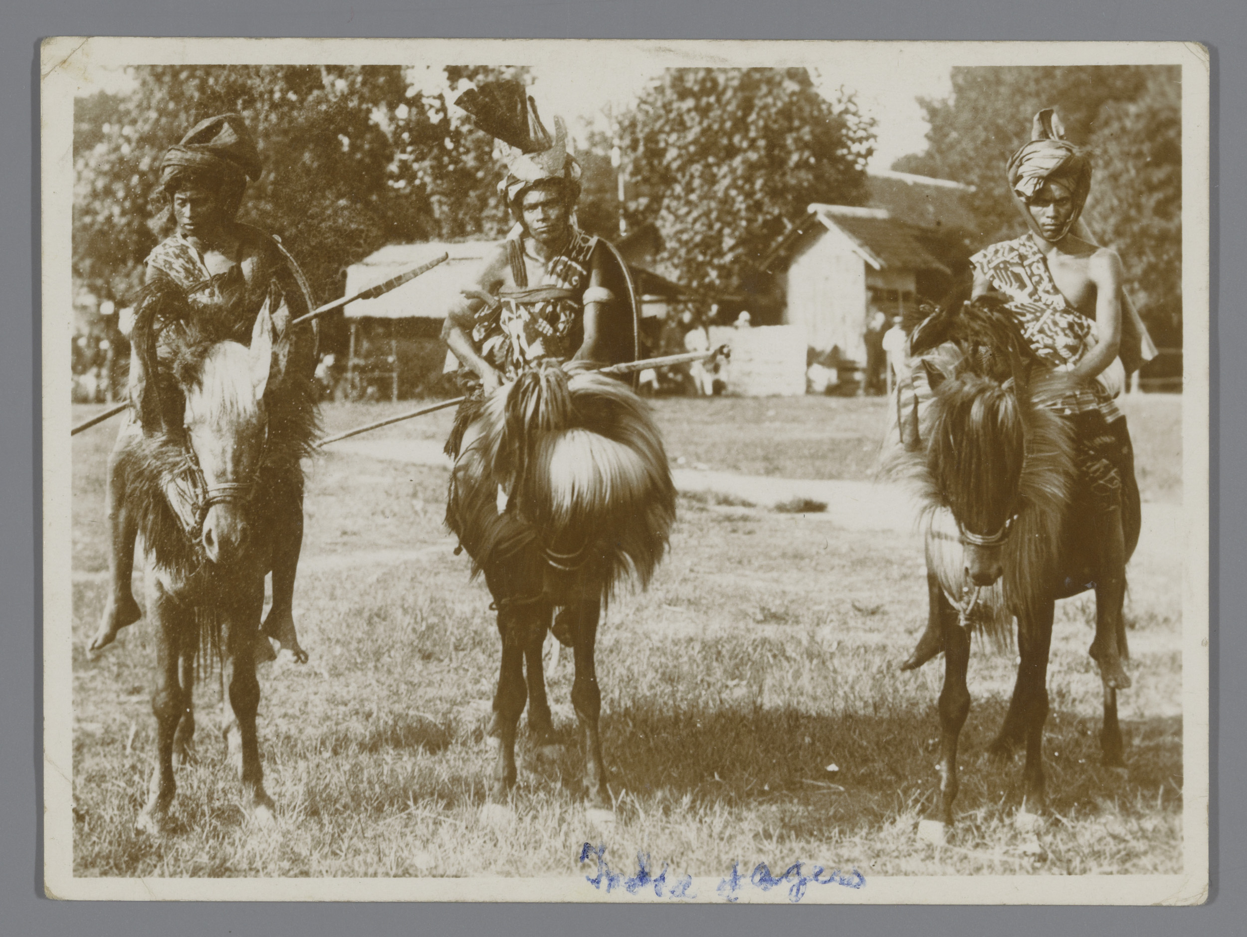Drie krijgers met speren op paarden (vermoedelijk) t...