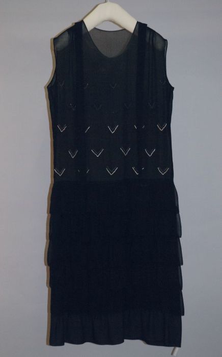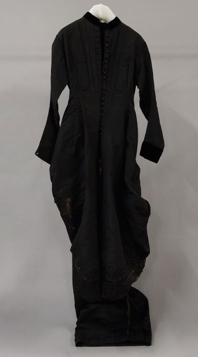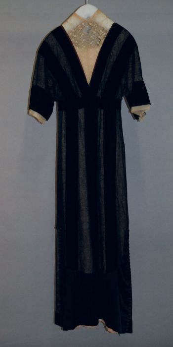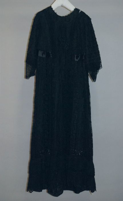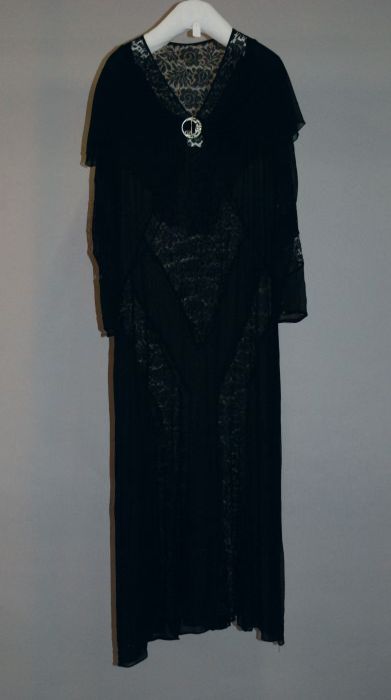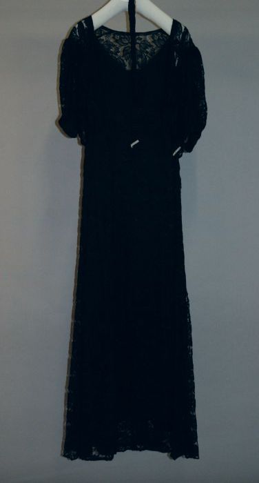 Avondensemble, zwart kanten gevoerde japon, kanten j...