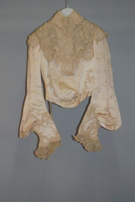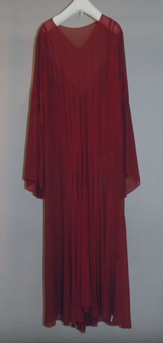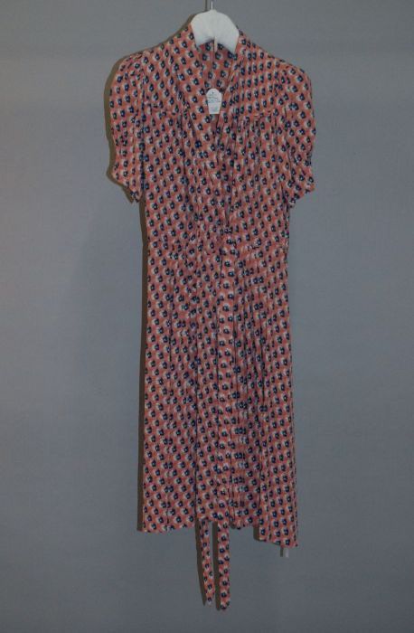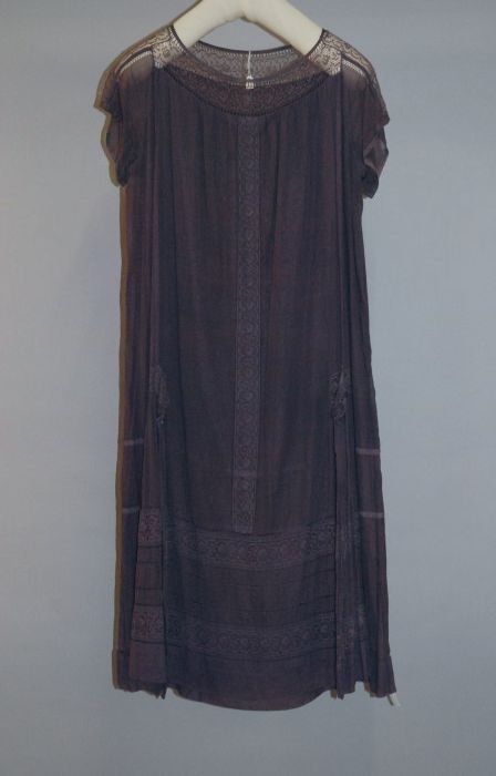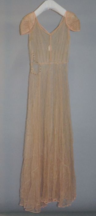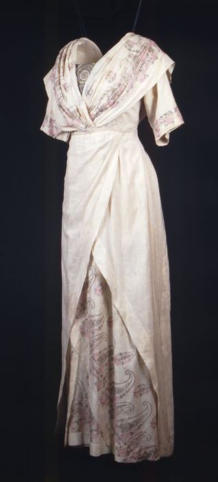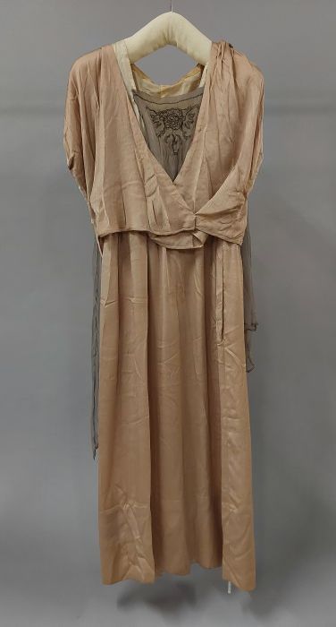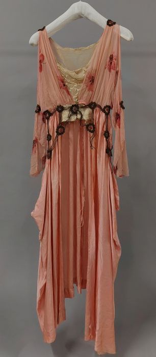 Roze zijden japon met grijze crêpe, losse mouwen, co...