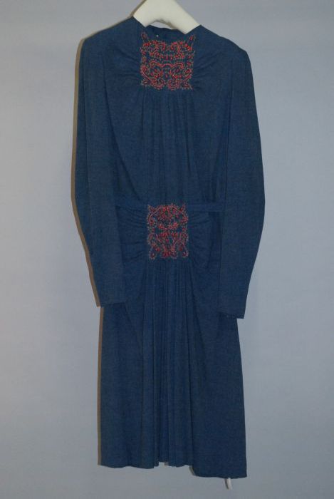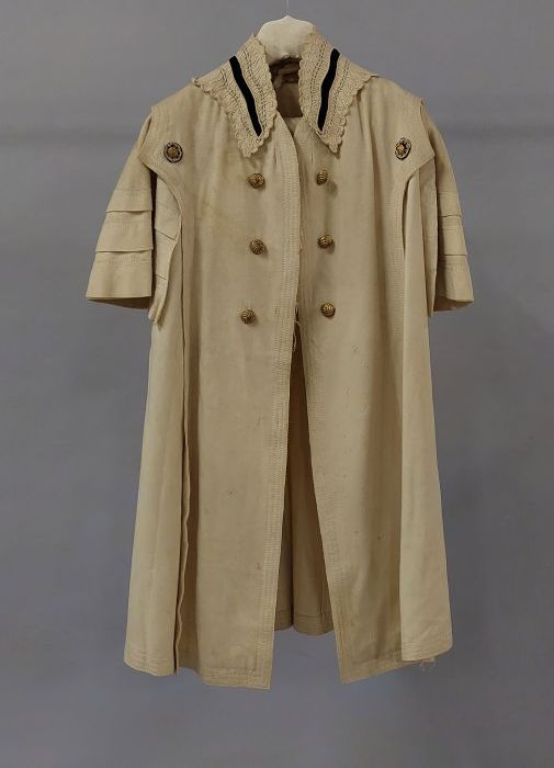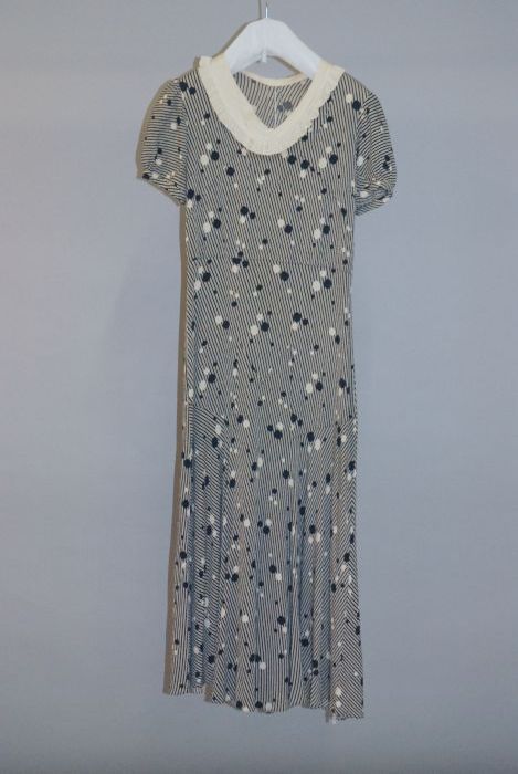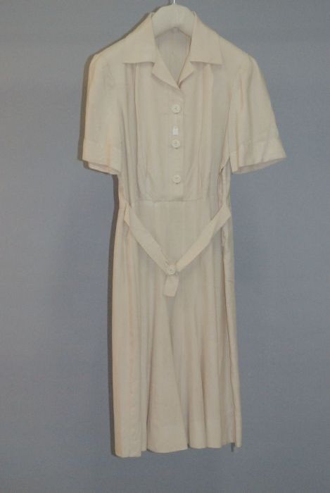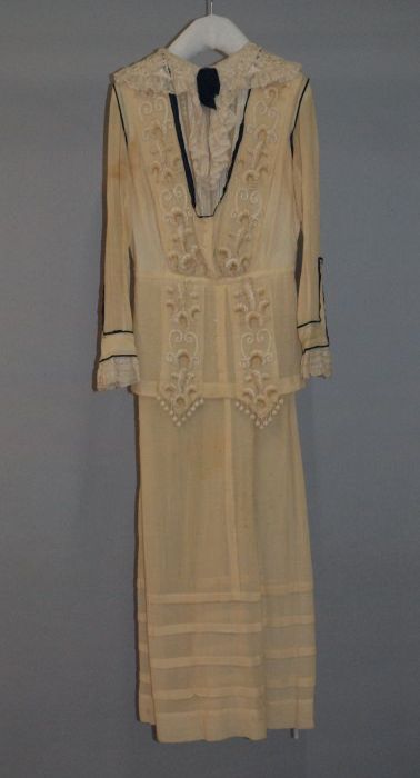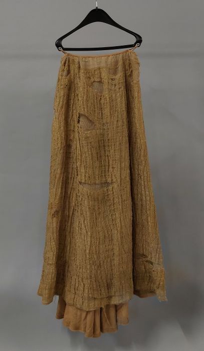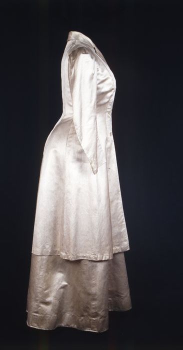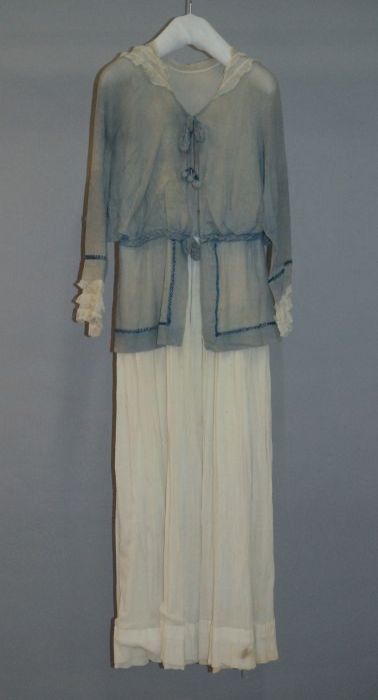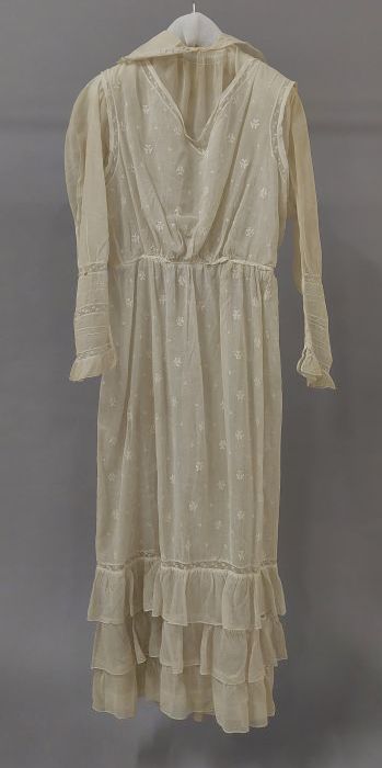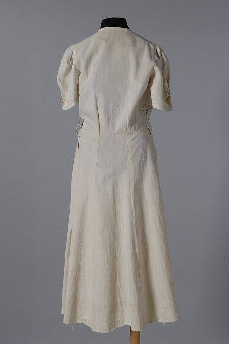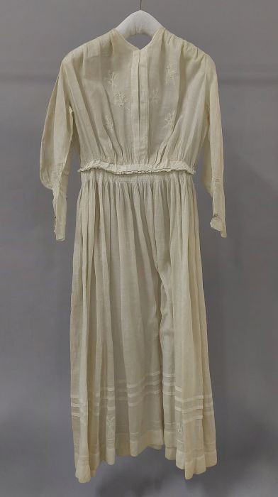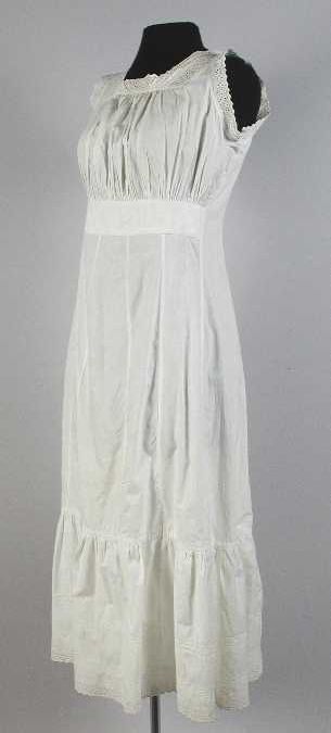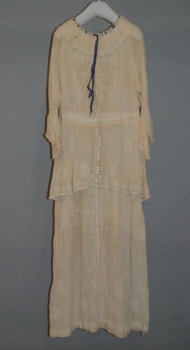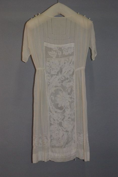 Knielange japon, lijfje van linnen en rok van pitjes...
