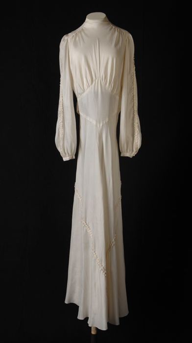 Bruidsjurk van witte parachutezijde, aangerimpeld li...