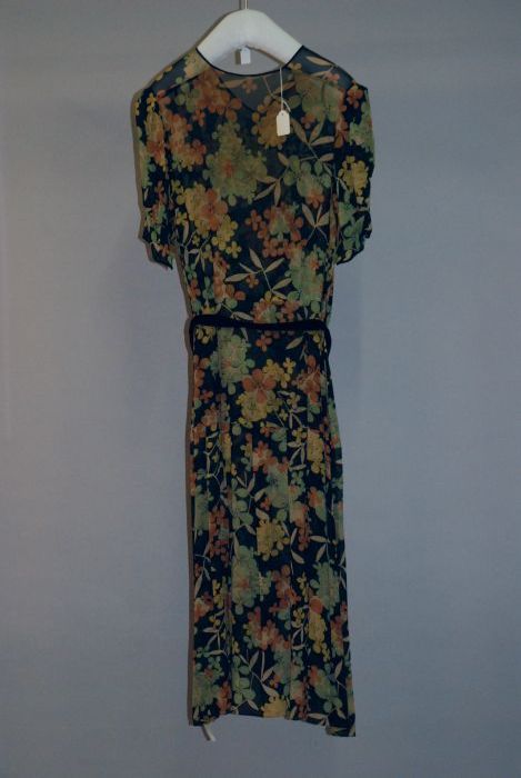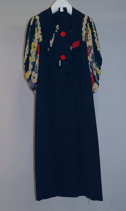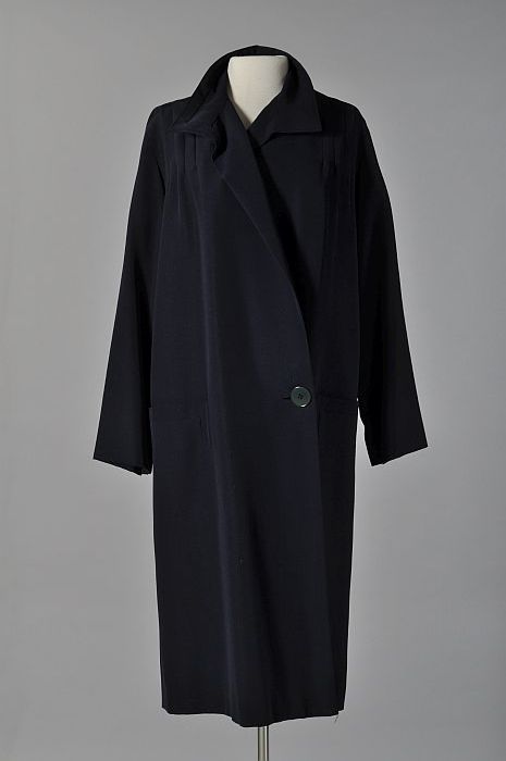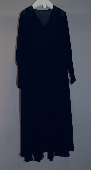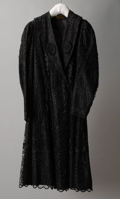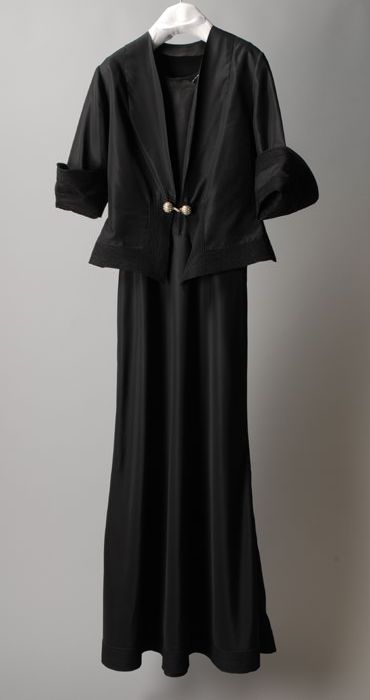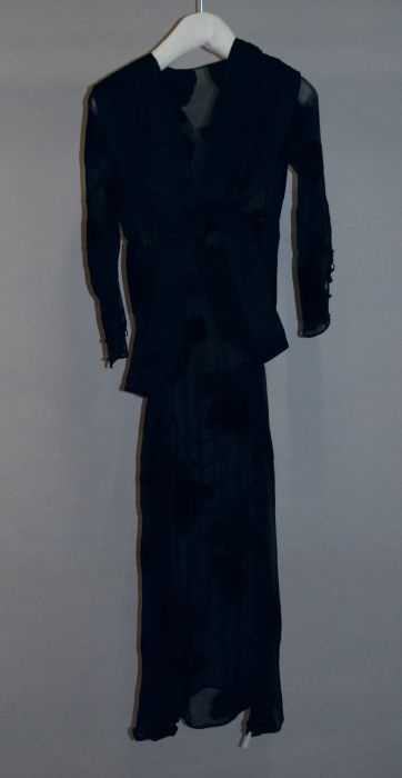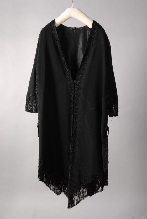 Avondensemble: zwarte avondjapon, ceintuur en jas