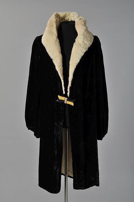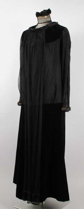 Knielange avondmantel van zwart velours chiffon met ...