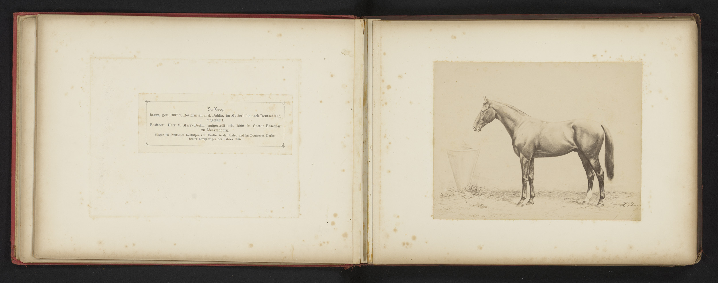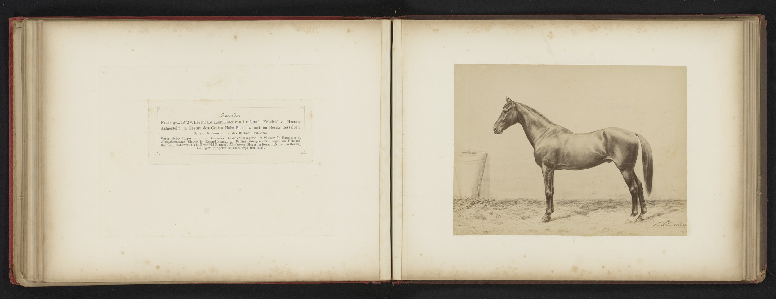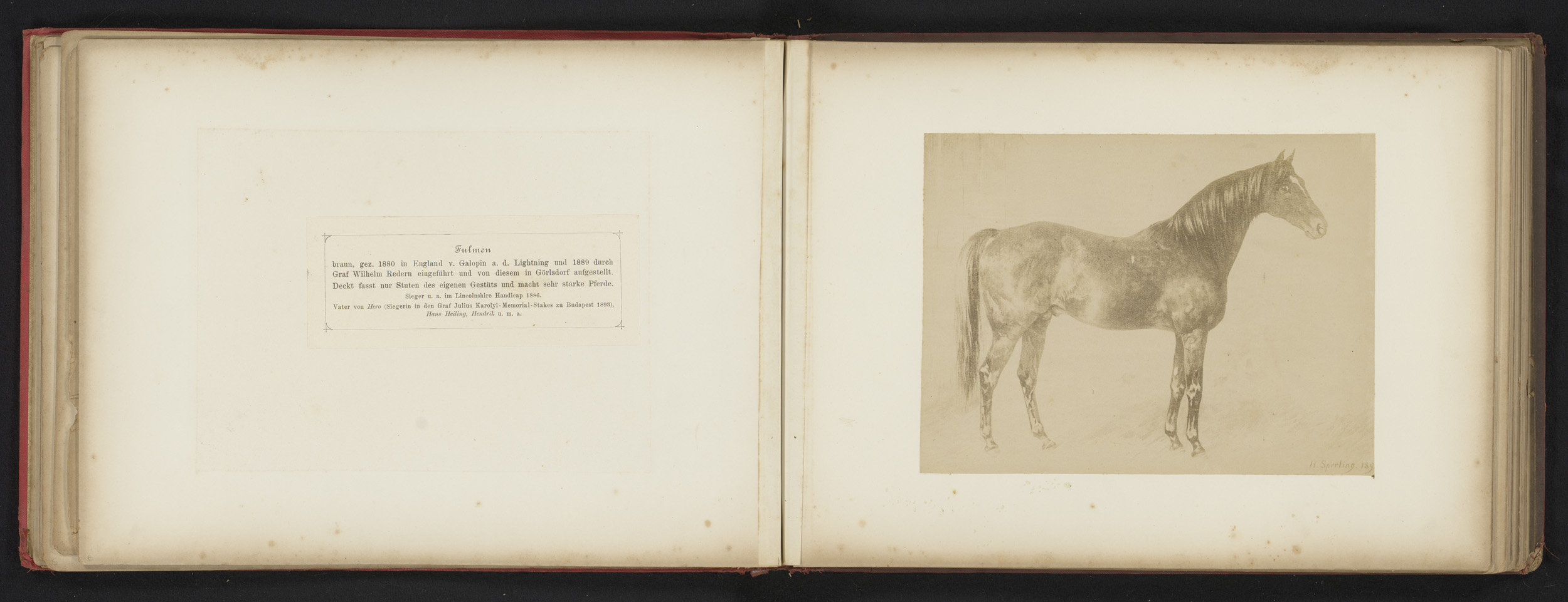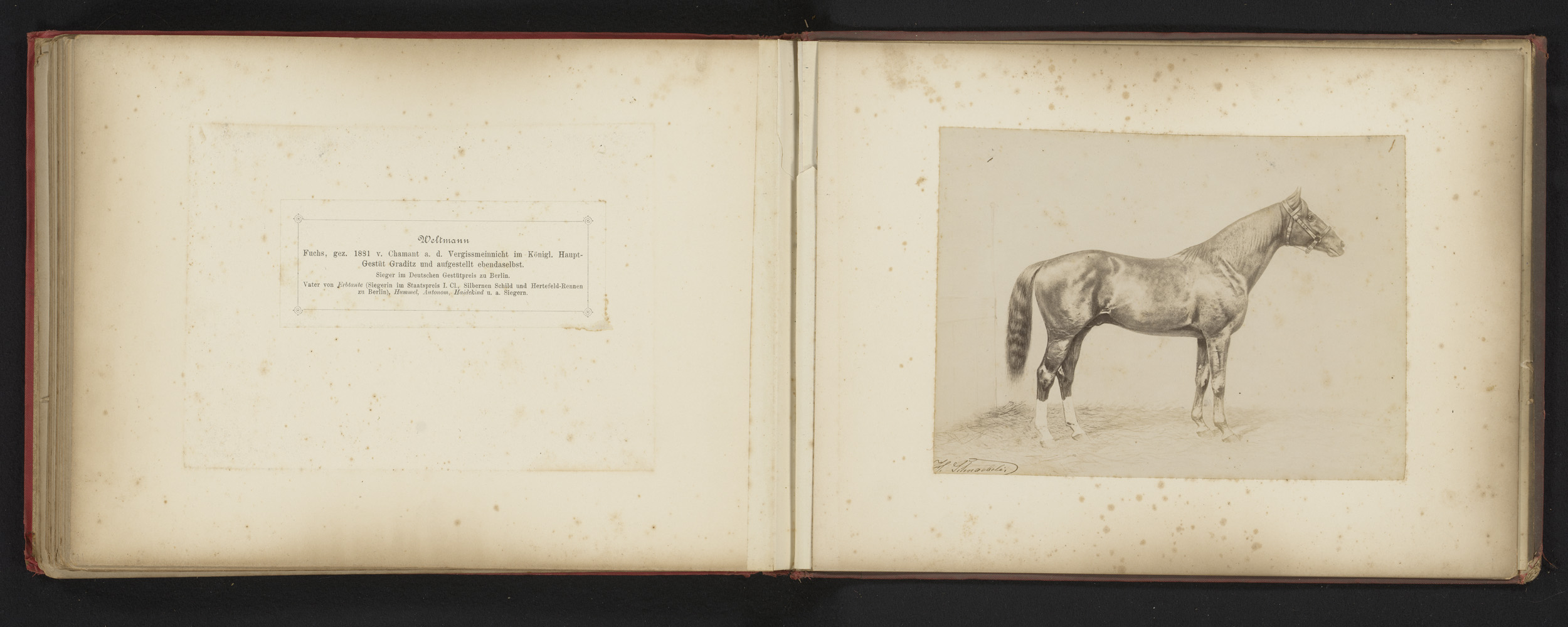Fotoreproductie van een tekening van een paard, gena...