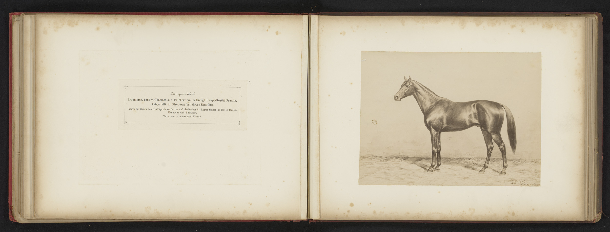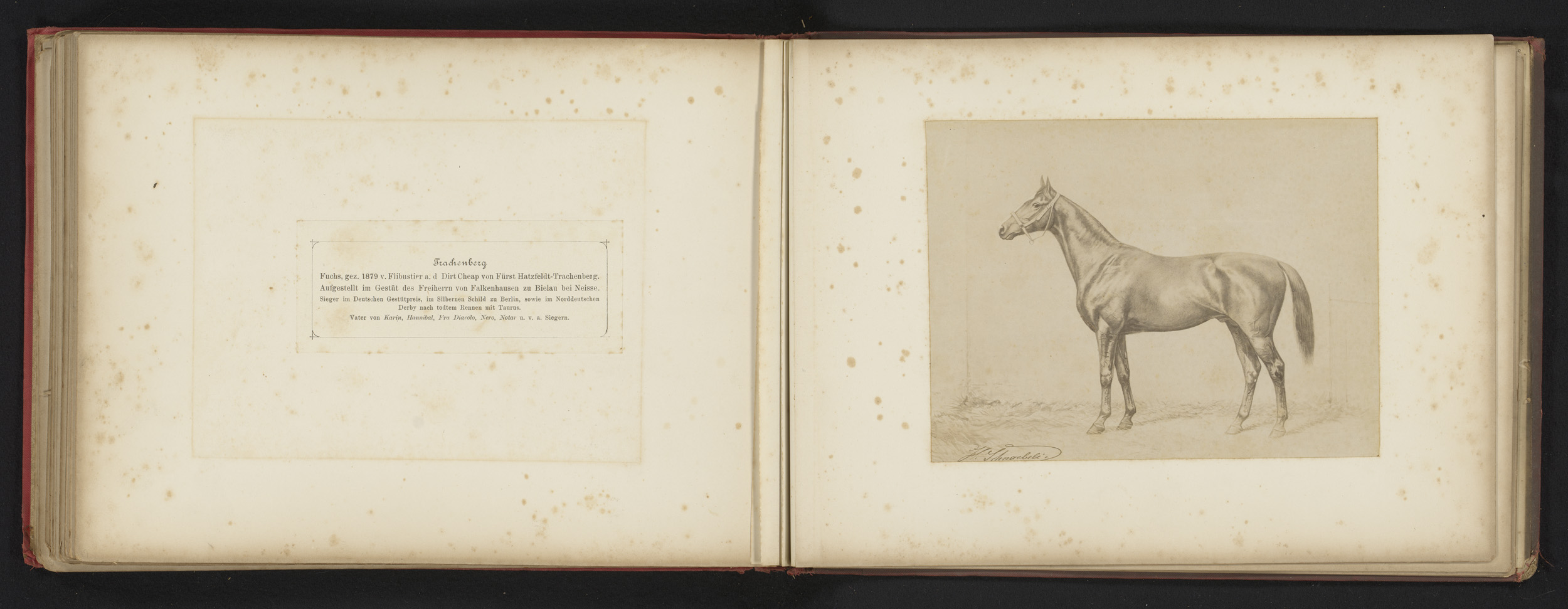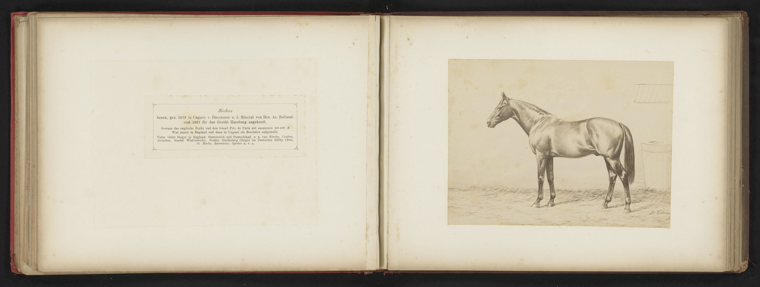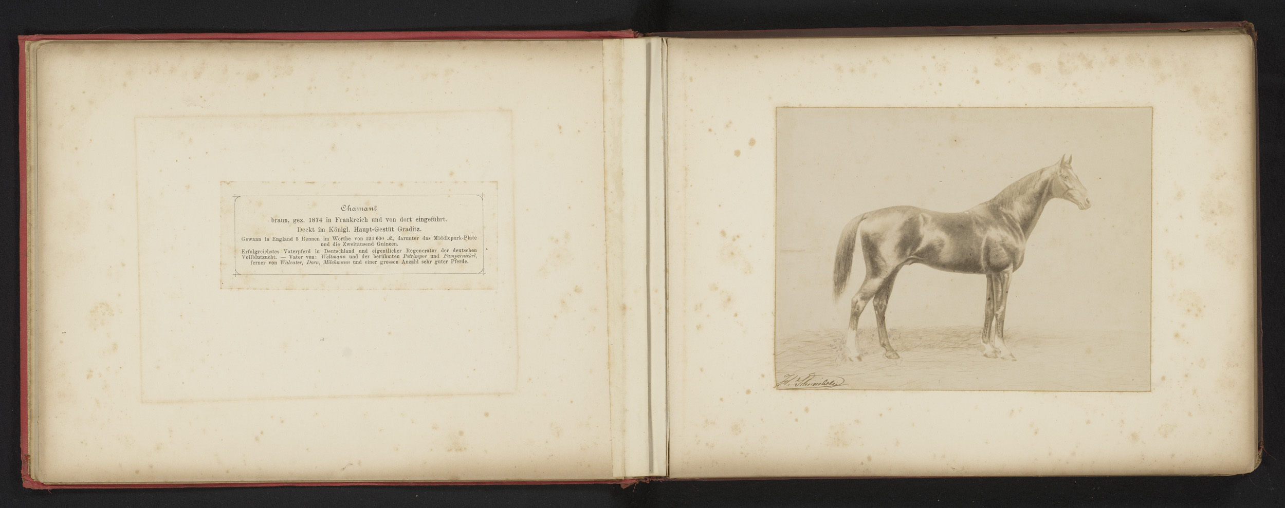 Fotoreproductie van een tekening van een paard, gena...