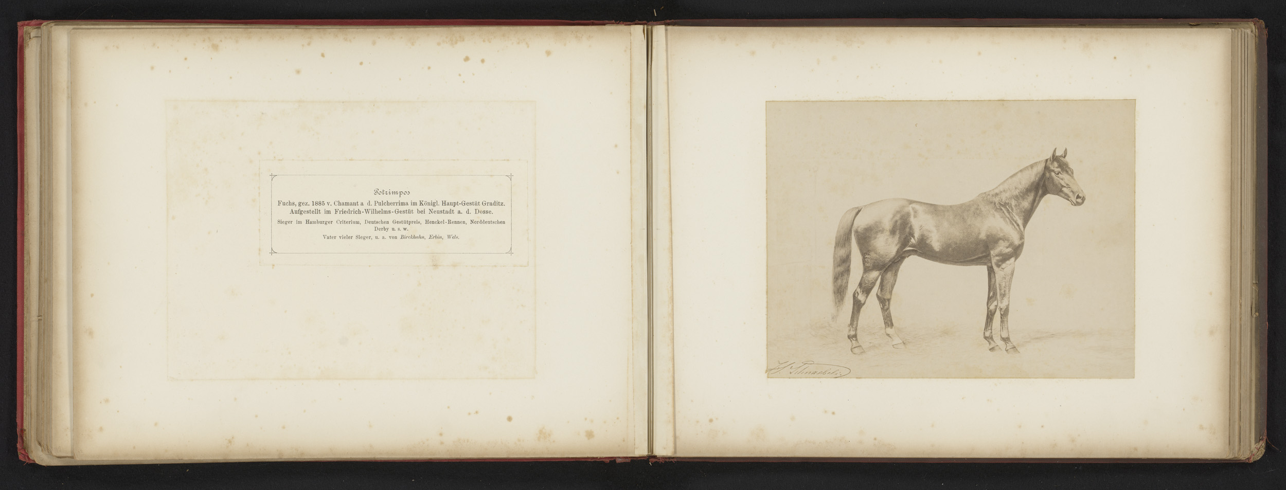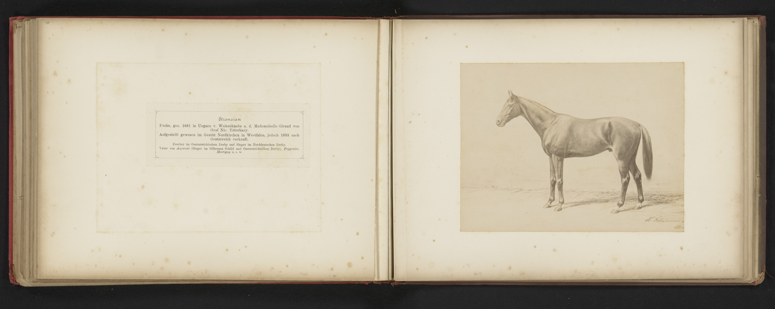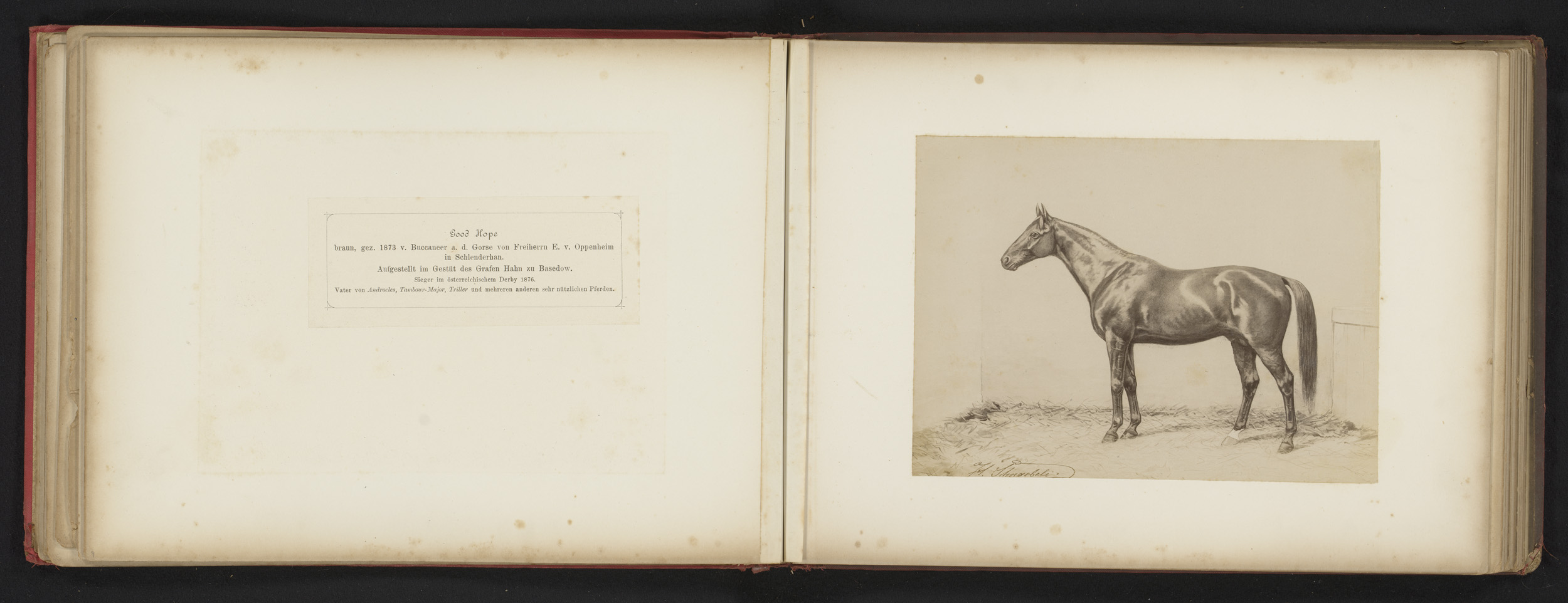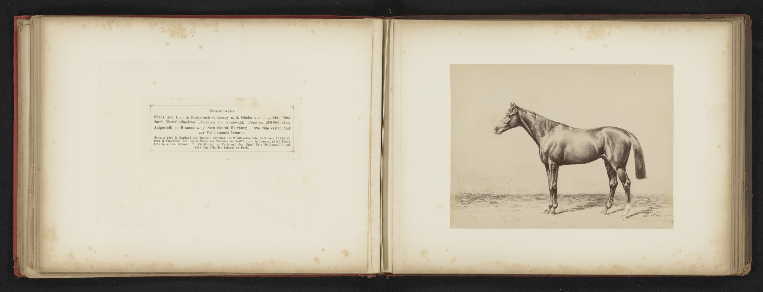 Fotoreproductie van een tekening van een paard, gena...