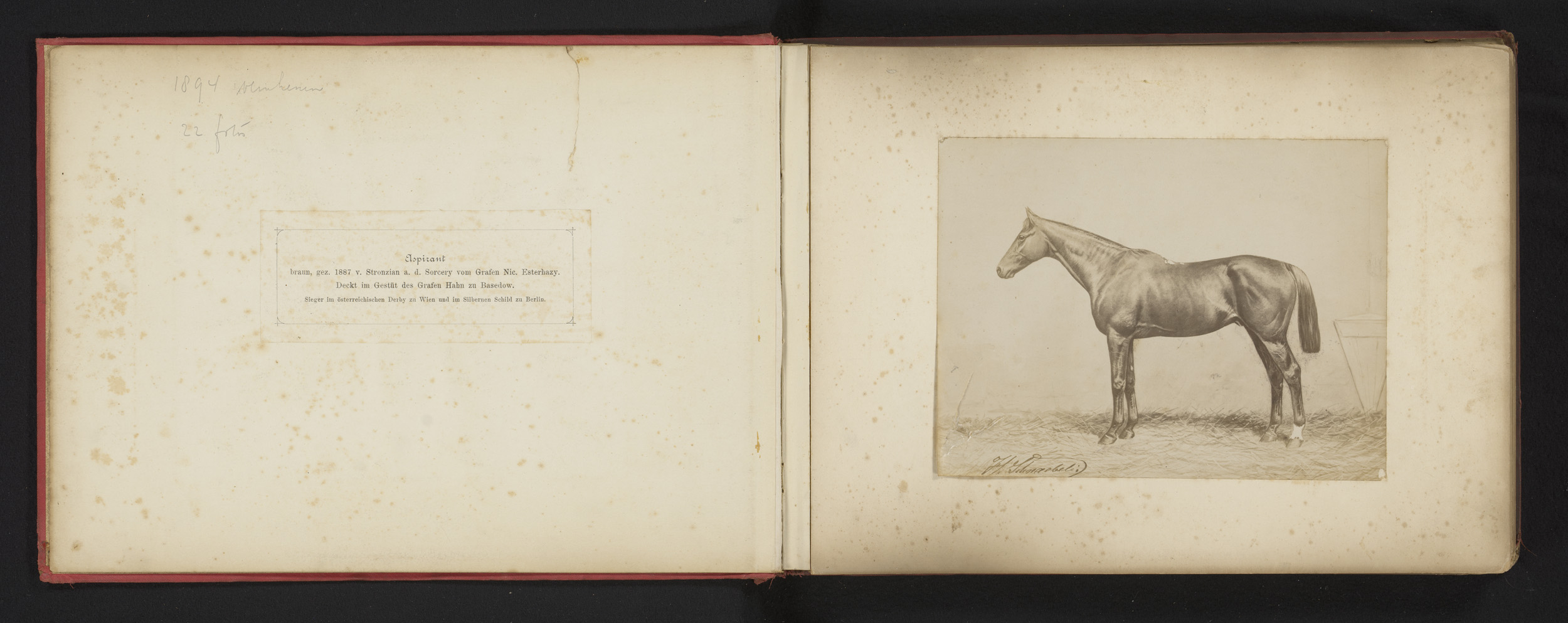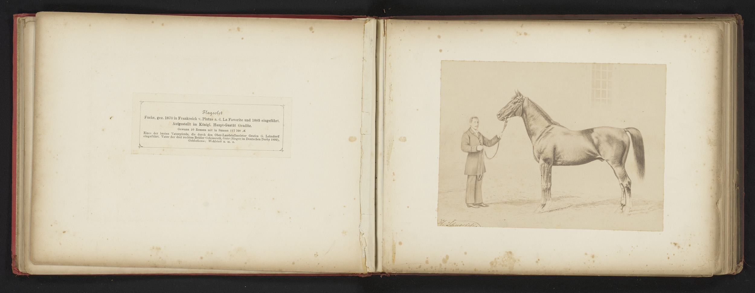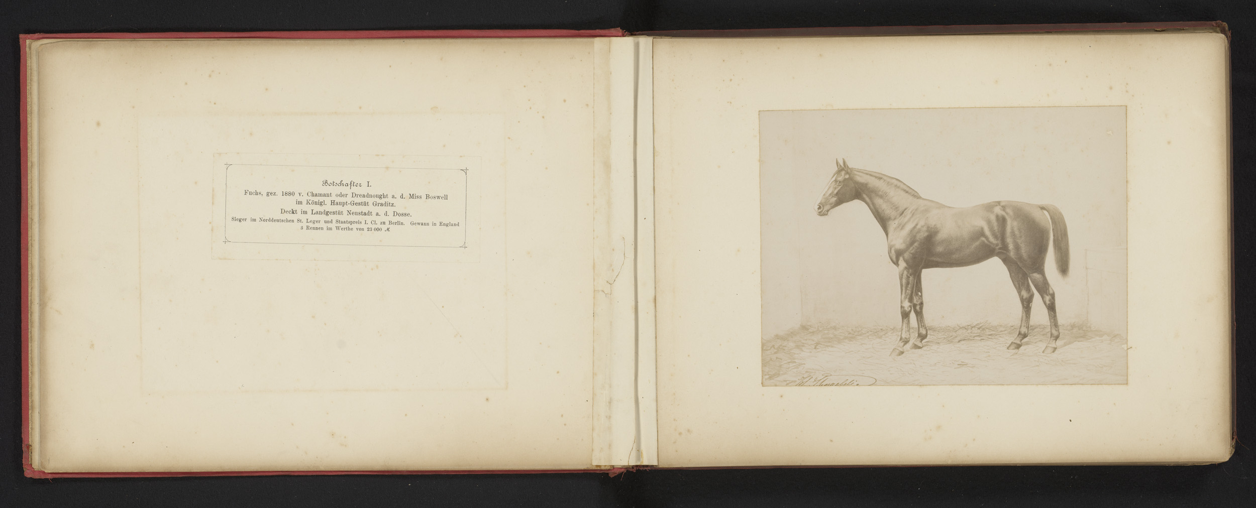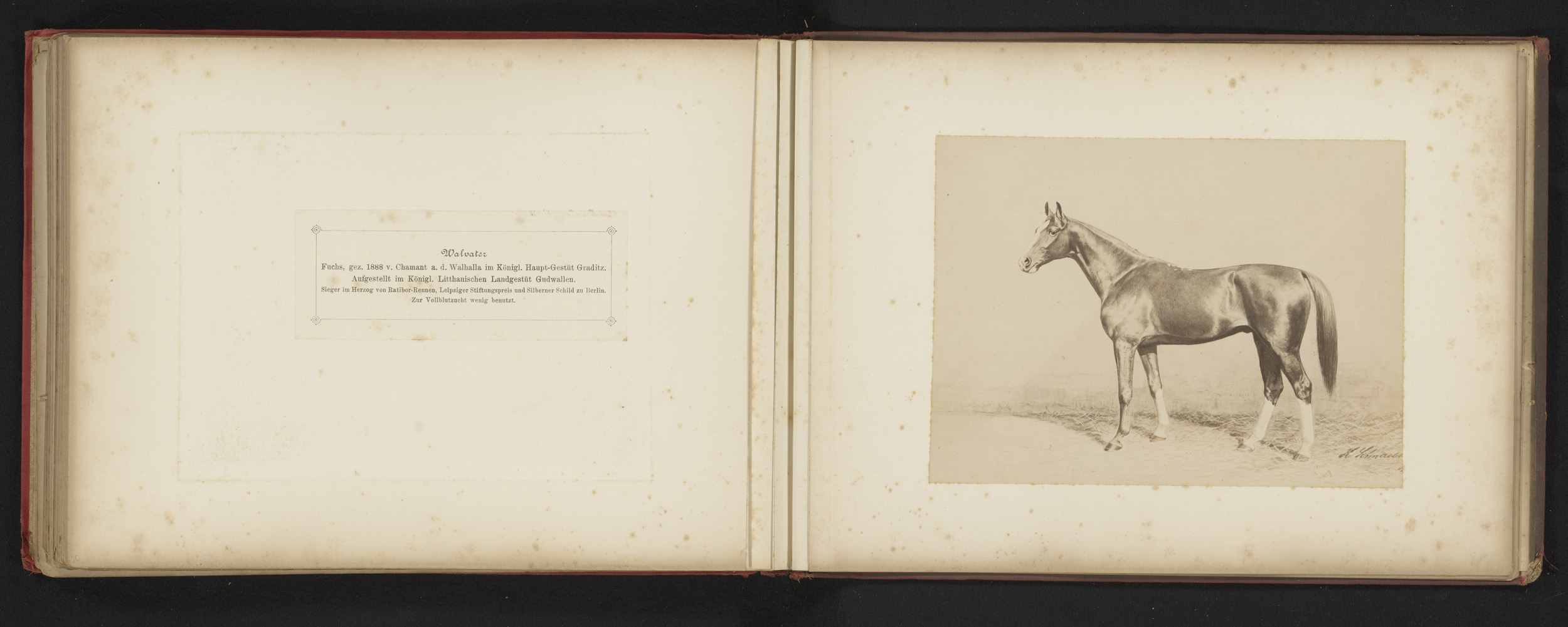 Fotoreproductie van een tekening van een paard, gena...