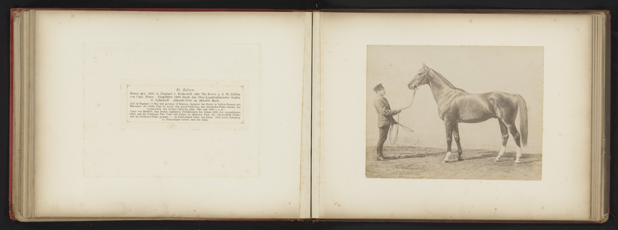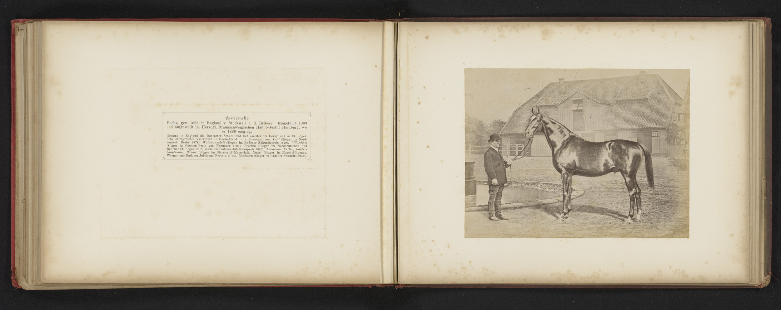 Man met paard, genaamd Savernake, voor een boerderij