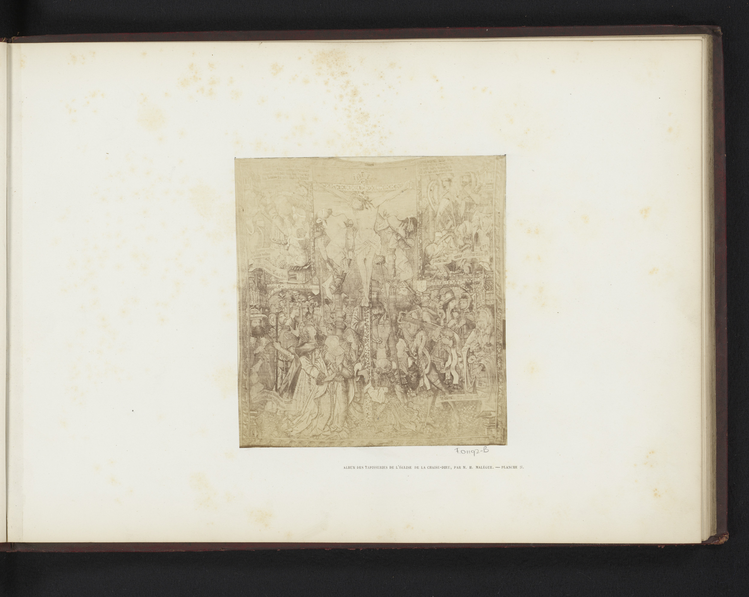Tapijt met de kruisigingsdood van Christus in een ke...